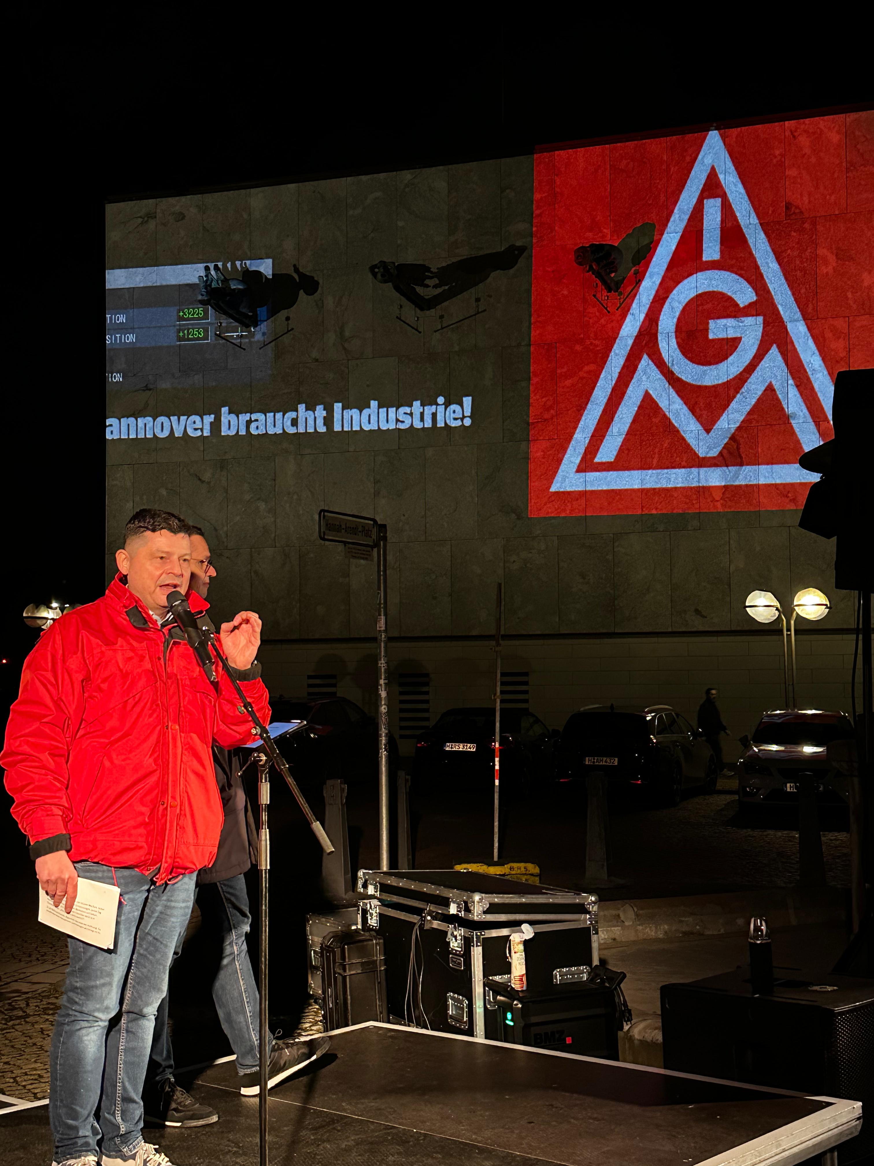 Sascha Dudzik, Erster Bevollmächtigter der IG Metall Hannover, wies auf die schwierige Situation zahlreicher hannoverscher Industriebetriebe hin: "Starke Einschnitte bei VW Nutzfahrzeuge und Auseinandersetzungen bei ZF sind nur zwei Beispiele dafür, wie es vielen Betrieben in Hannover geht."