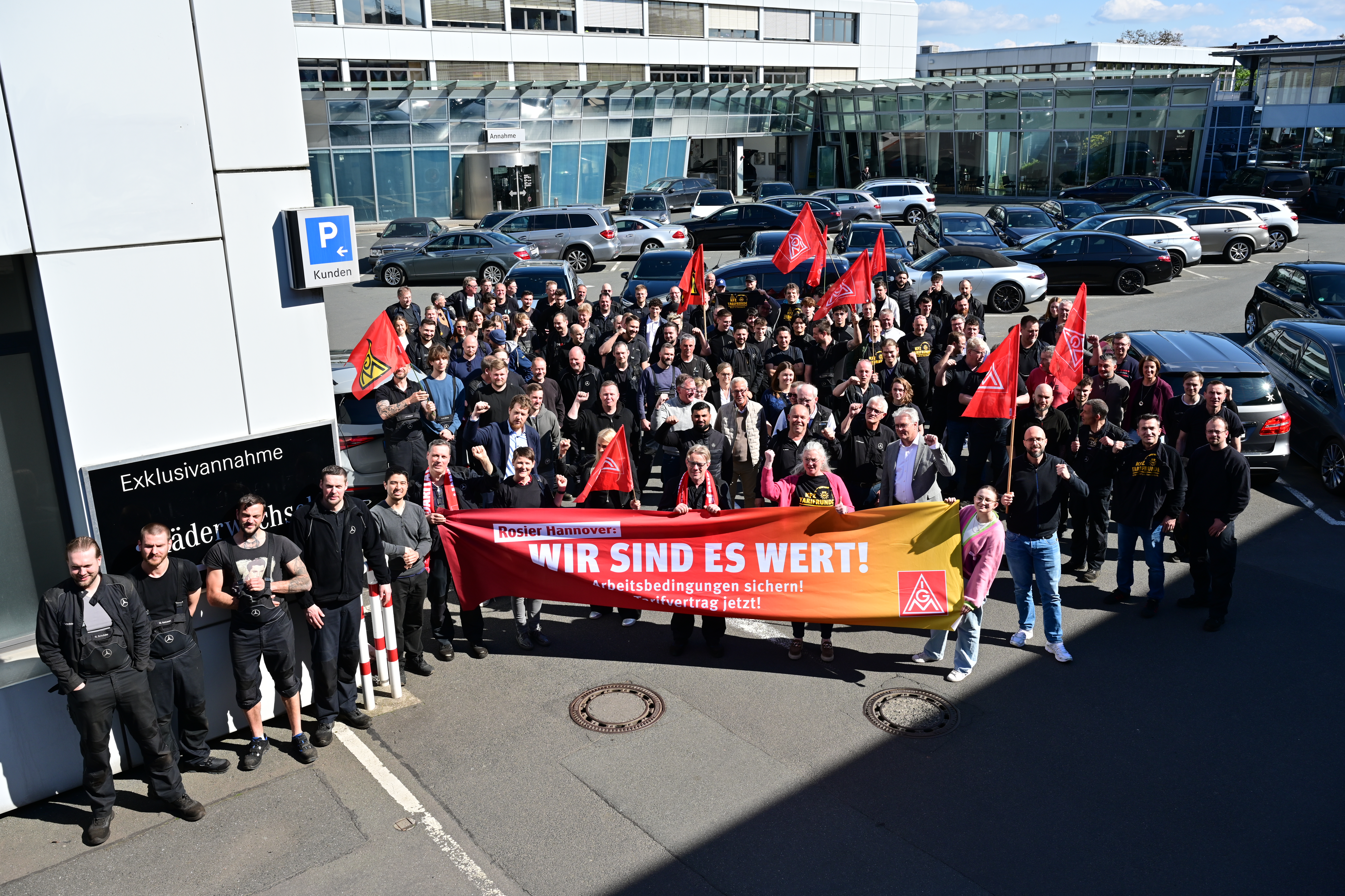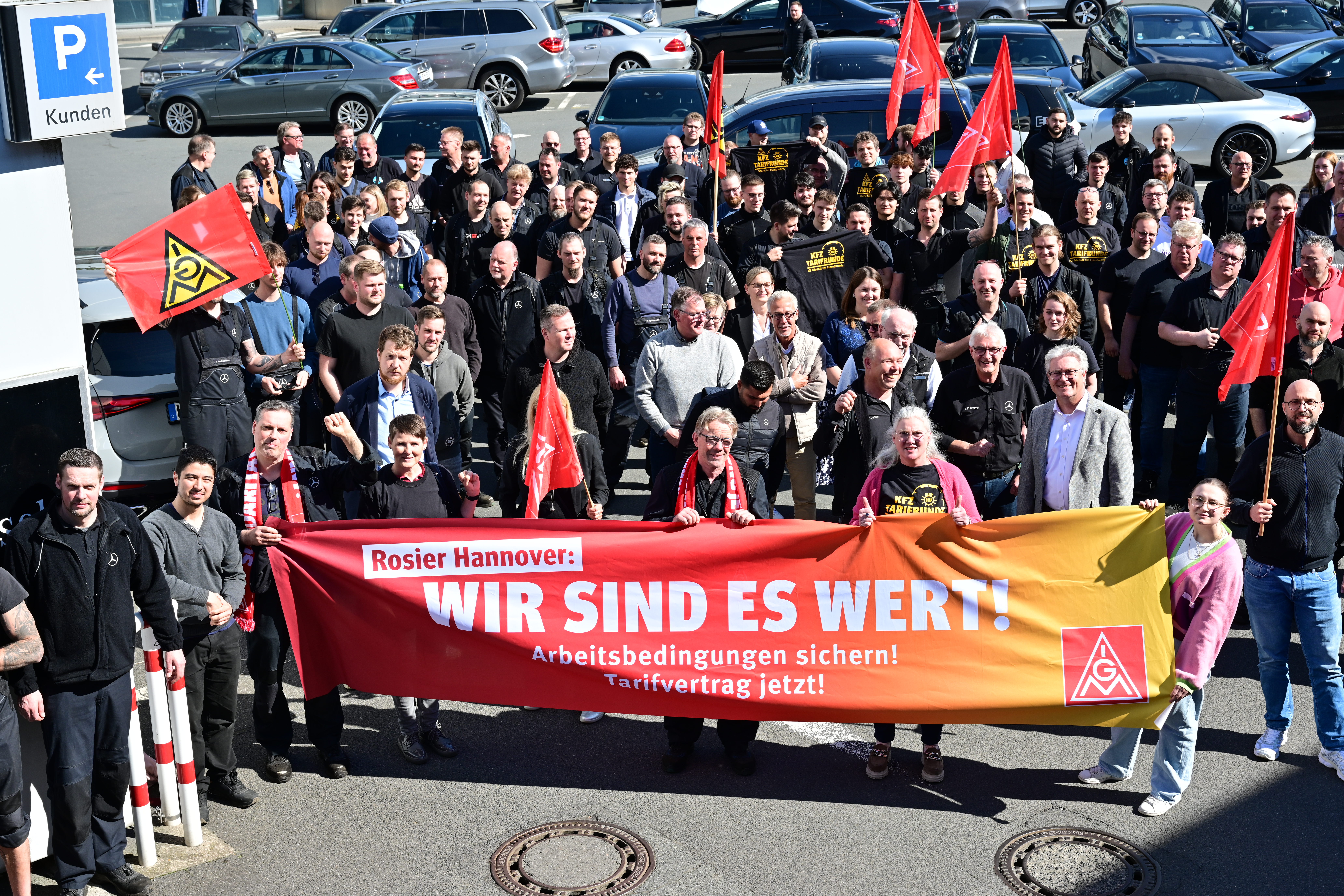 Belegschaft unterstützt IG-Metall-Forderungen geschlossen Tarifaktion bei Mercedes-Benz Niederlassung Hannover