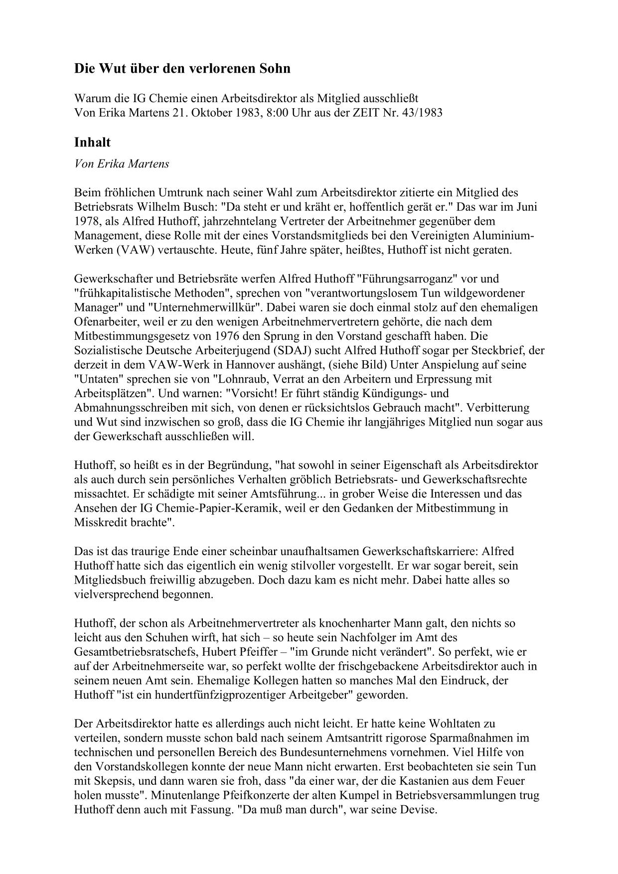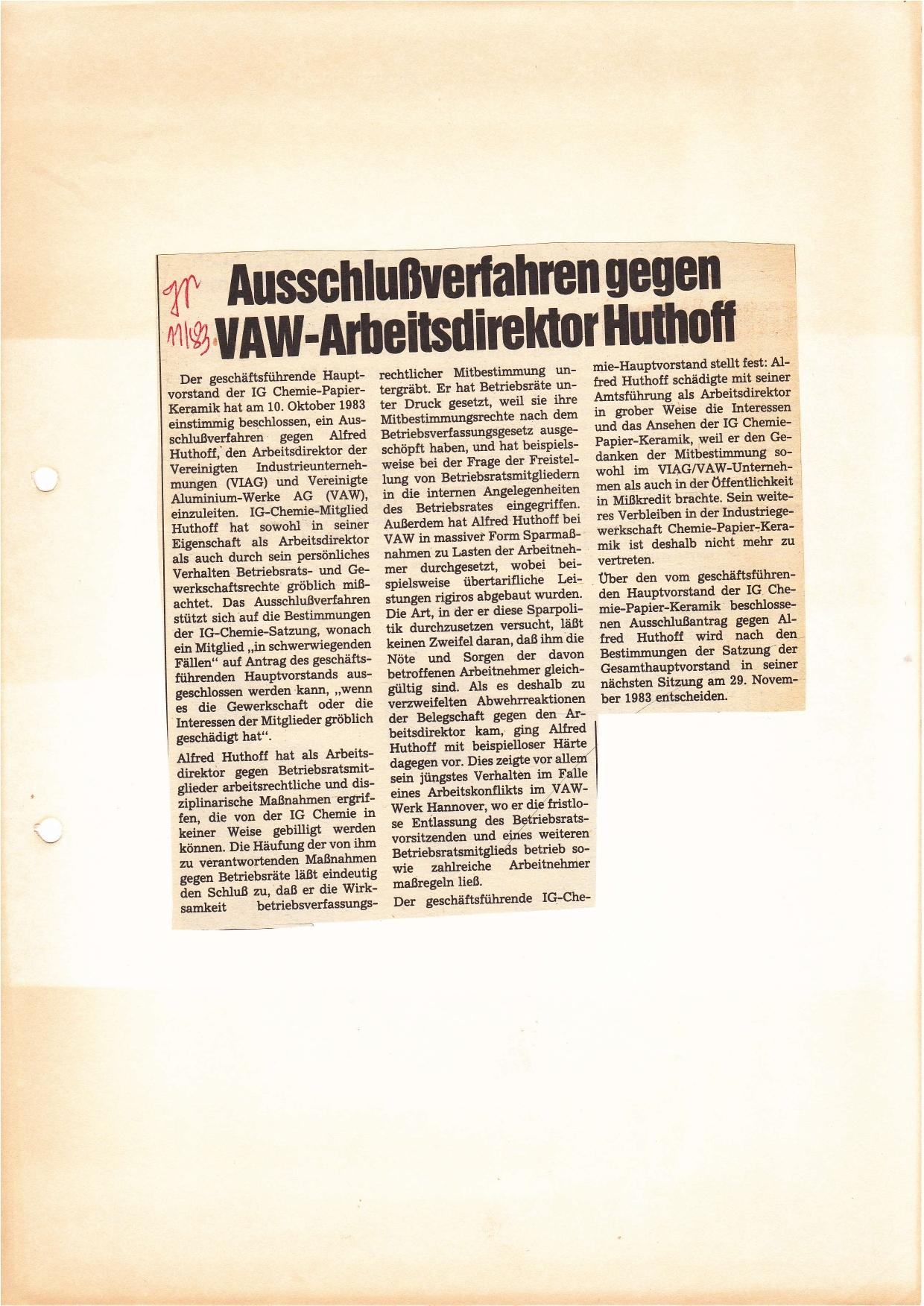 1983-10 Ausschlussverfahren IG Chemie-Huthoff