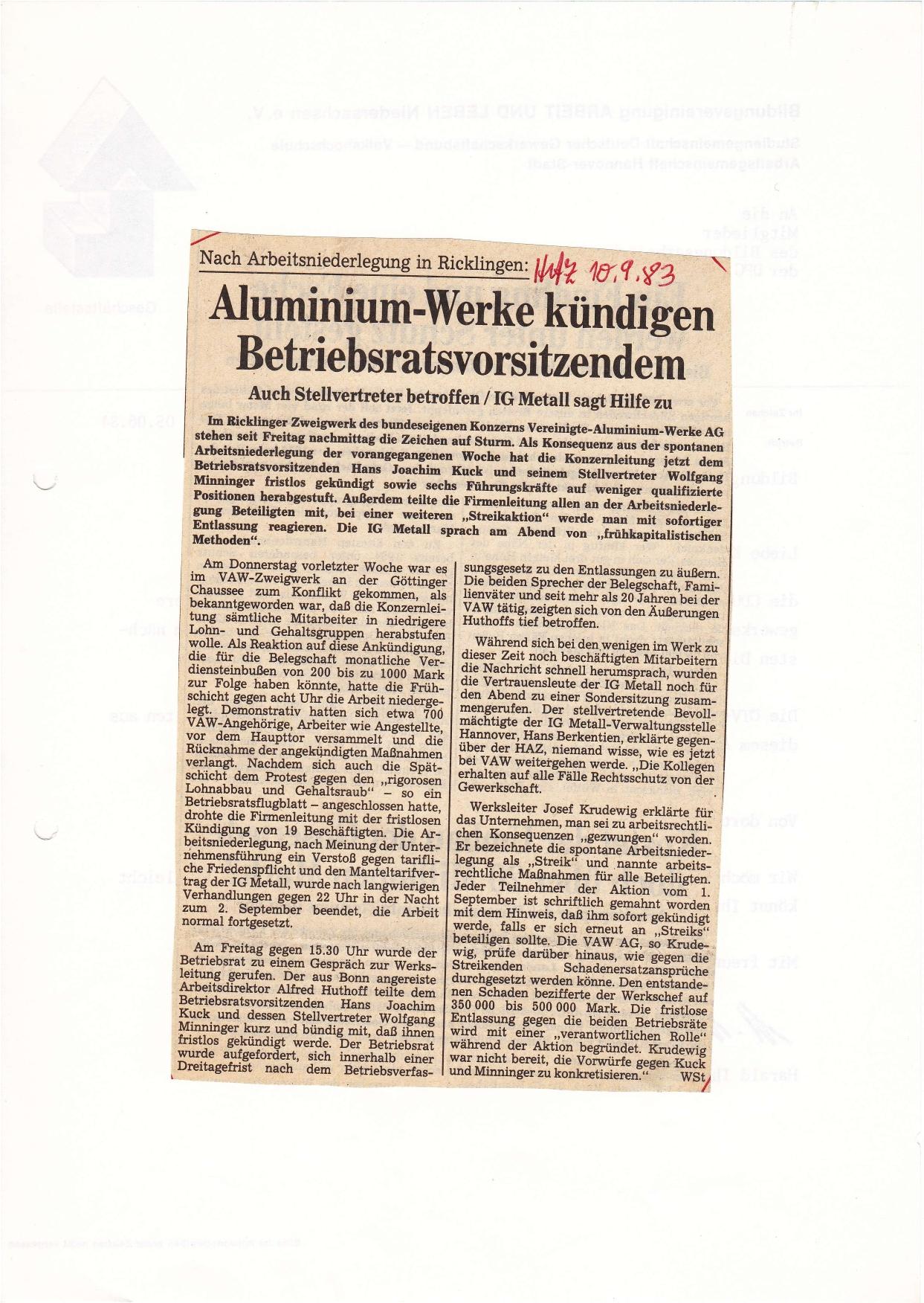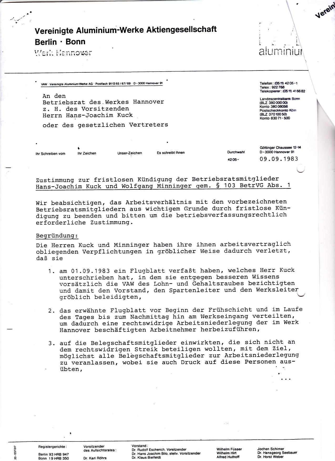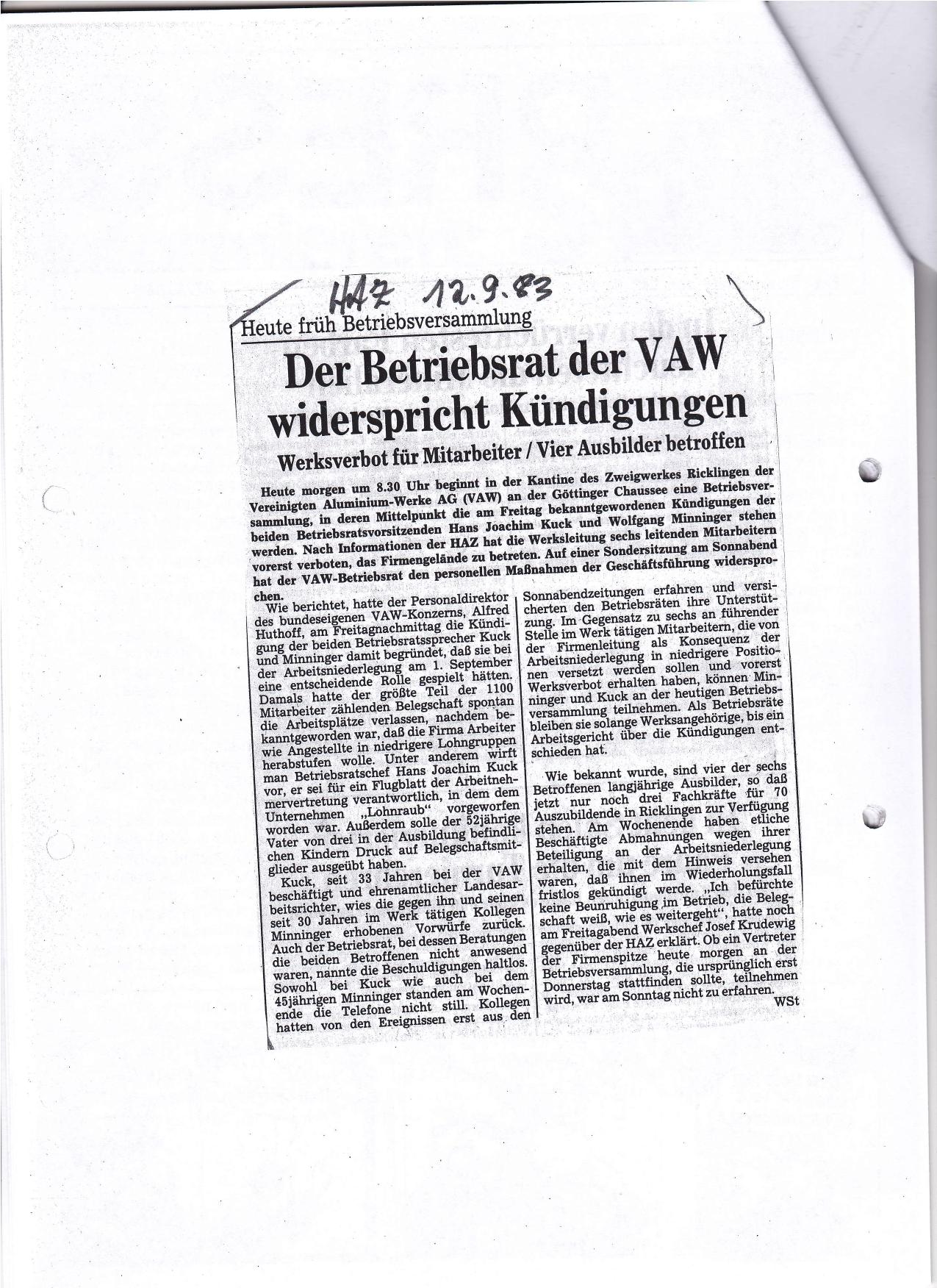 1983-09-10 VAW kündigt BRV und Stellvertreter