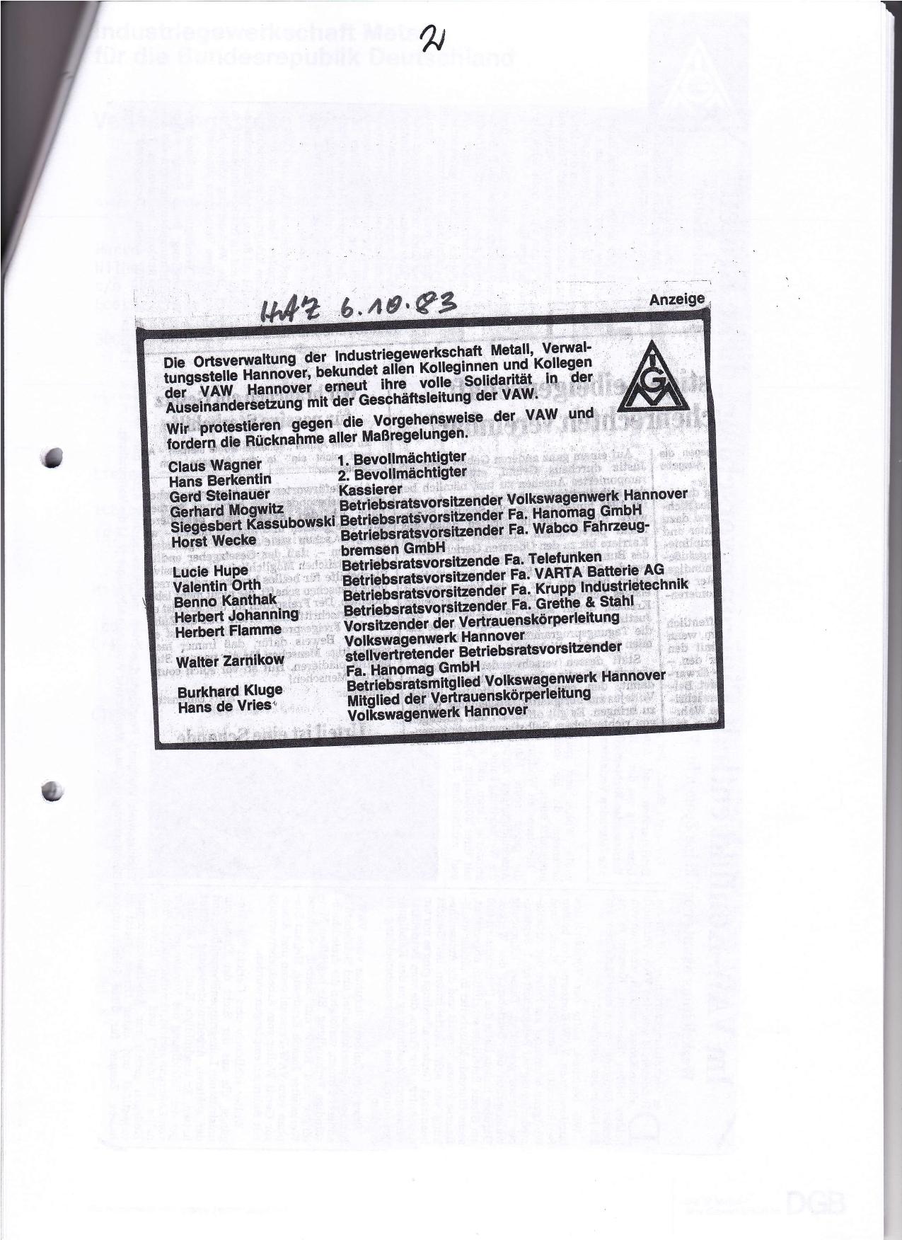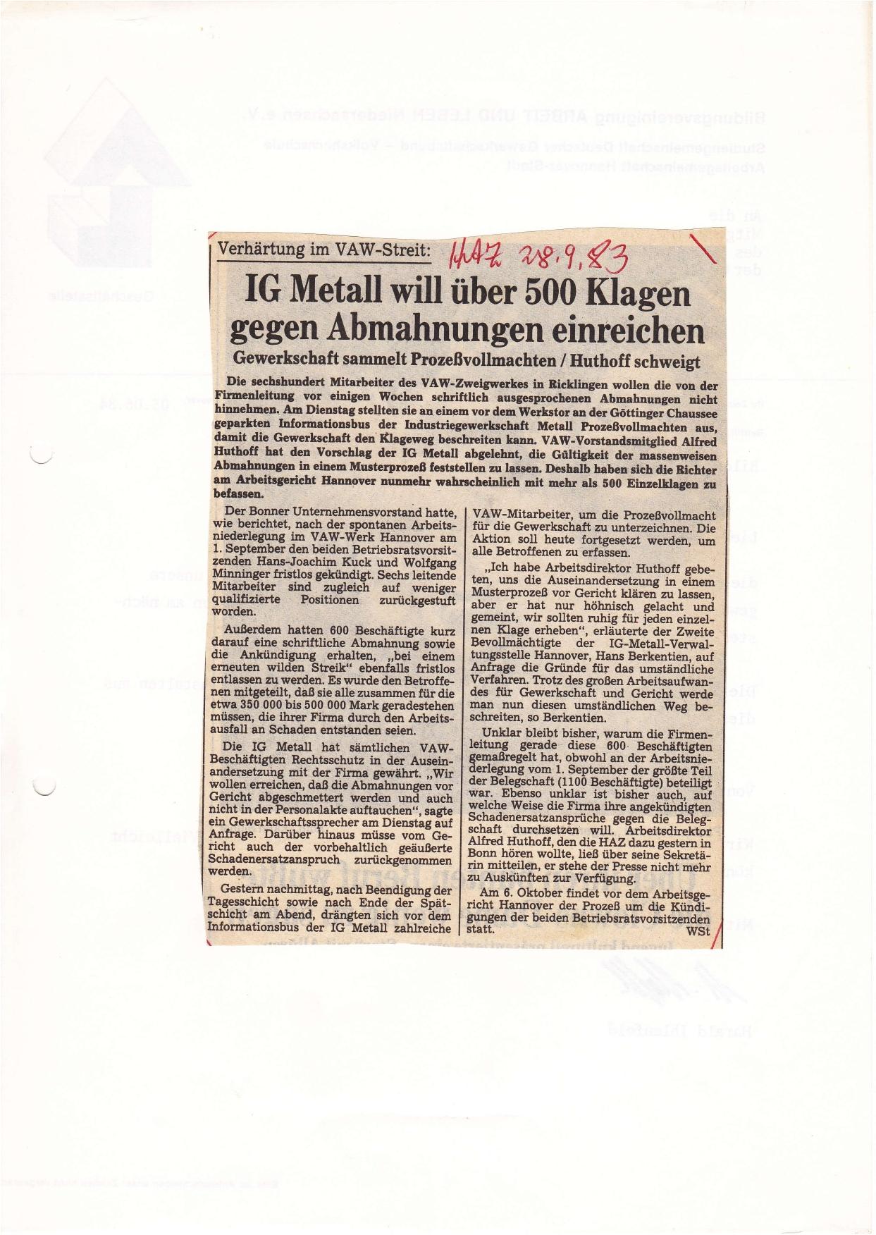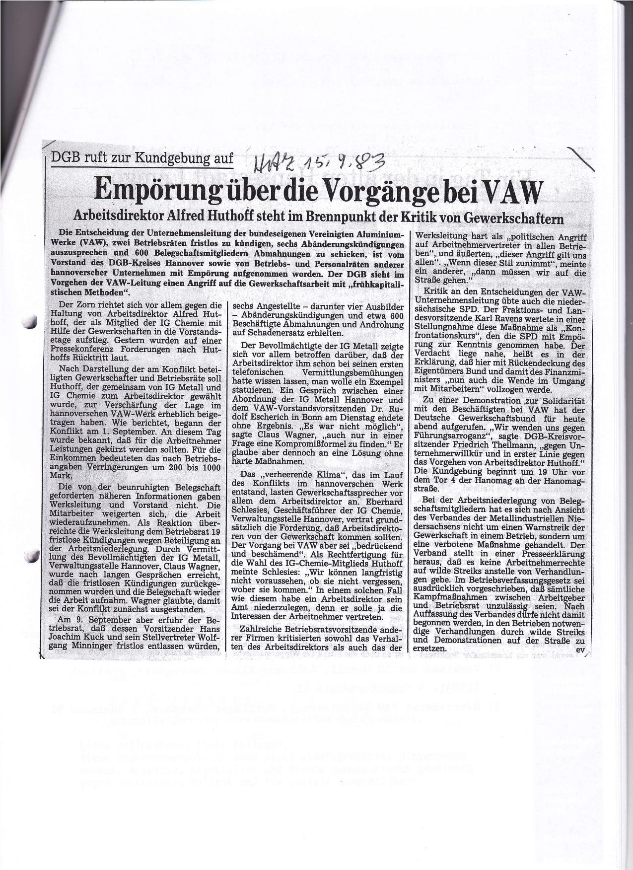 1983-09-10 VAW kündigt BRV und Stellvertreter