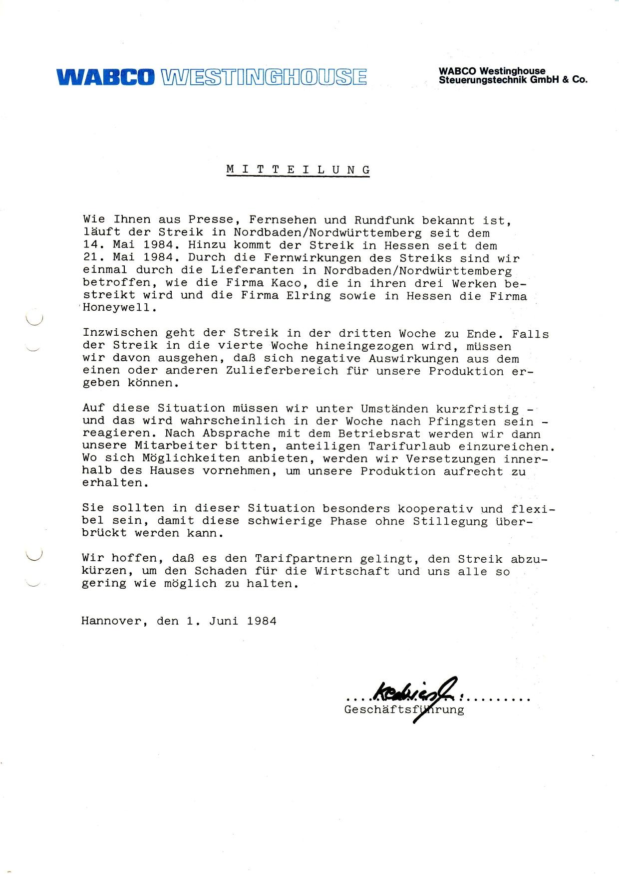 1984 BR-Wahl Angestellte WABCO Westinghouse Fahrzeugbremsen
