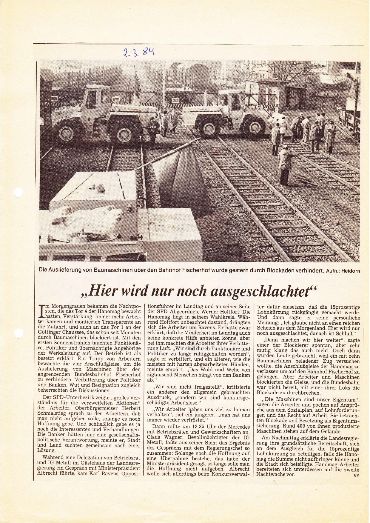 1984-03-02 Gleisblockade Fischerhof Hanomag