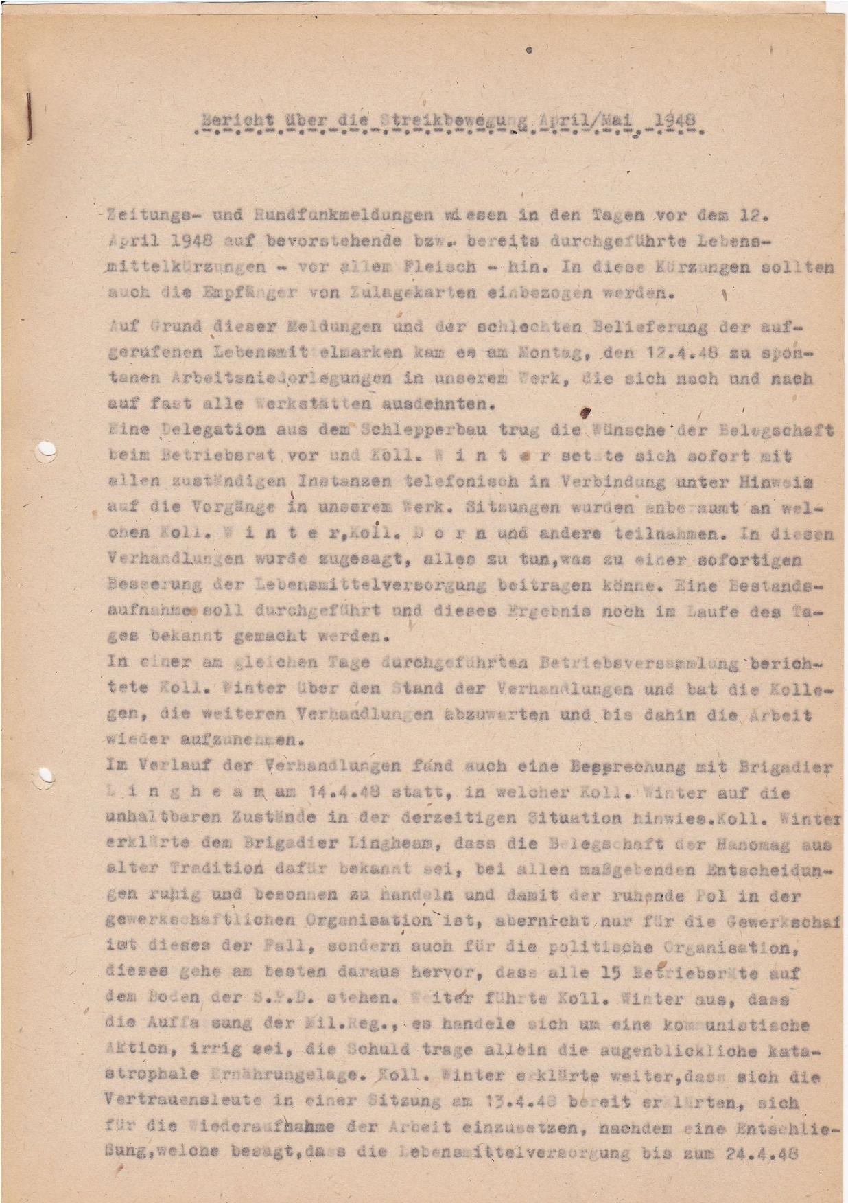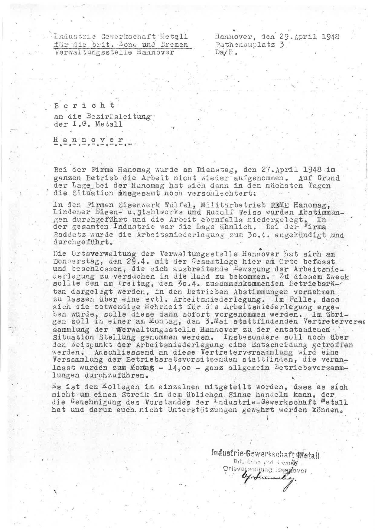 1948-04-29 Arbeitsniederlegung Hanomag Bericht IGM