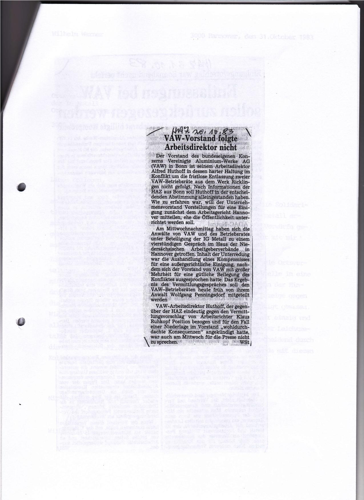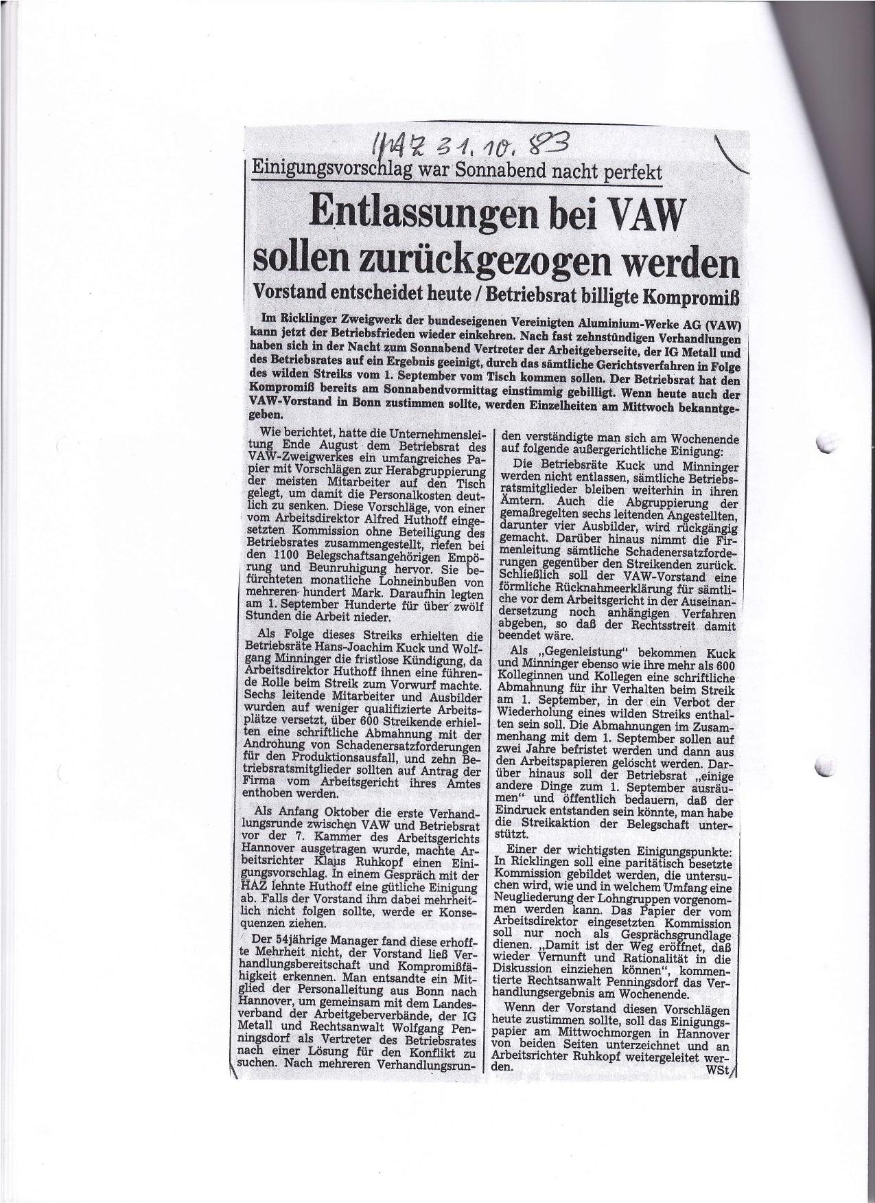 1983-10-31 Einigung VAW-Auseinandersetzung