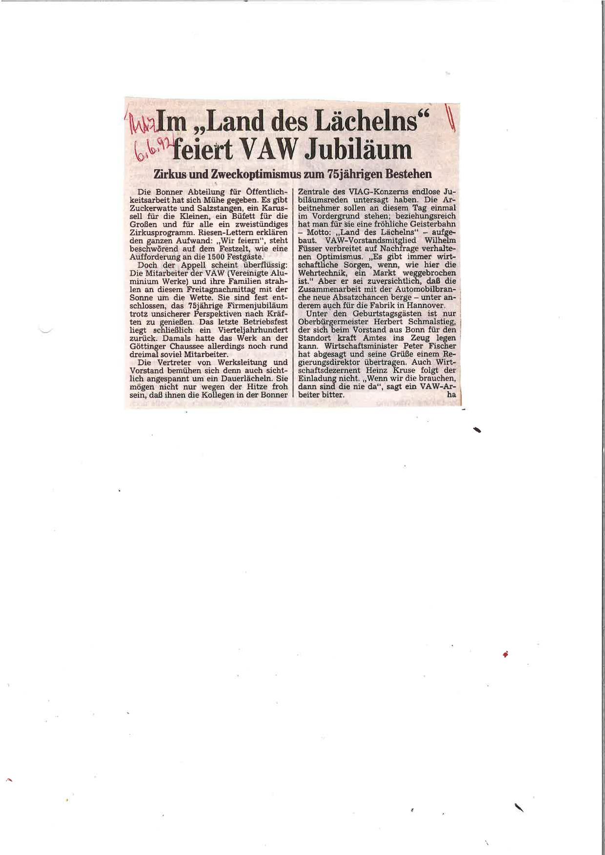 1992-06-06 VAW Jubiläum 75 Jahre