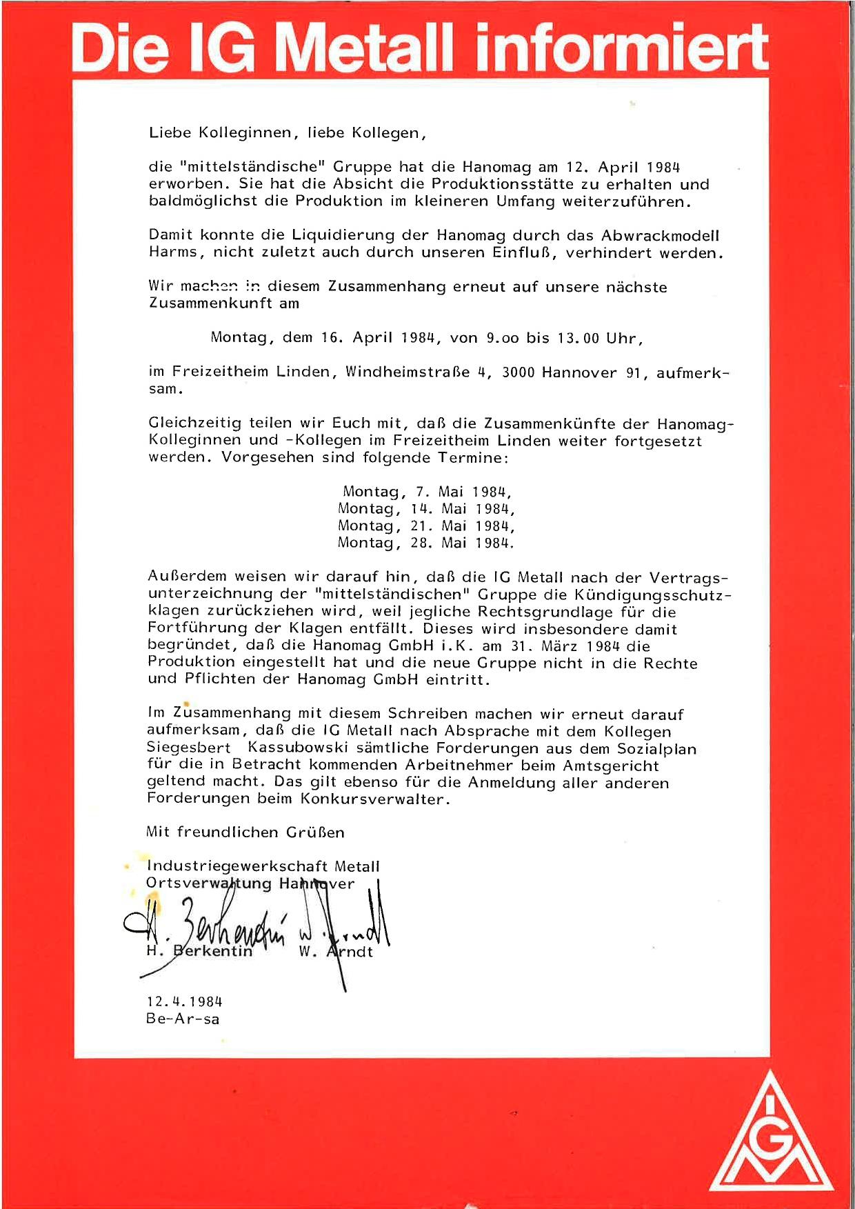 1984-04-12 IGM Hanomag Flugblatt