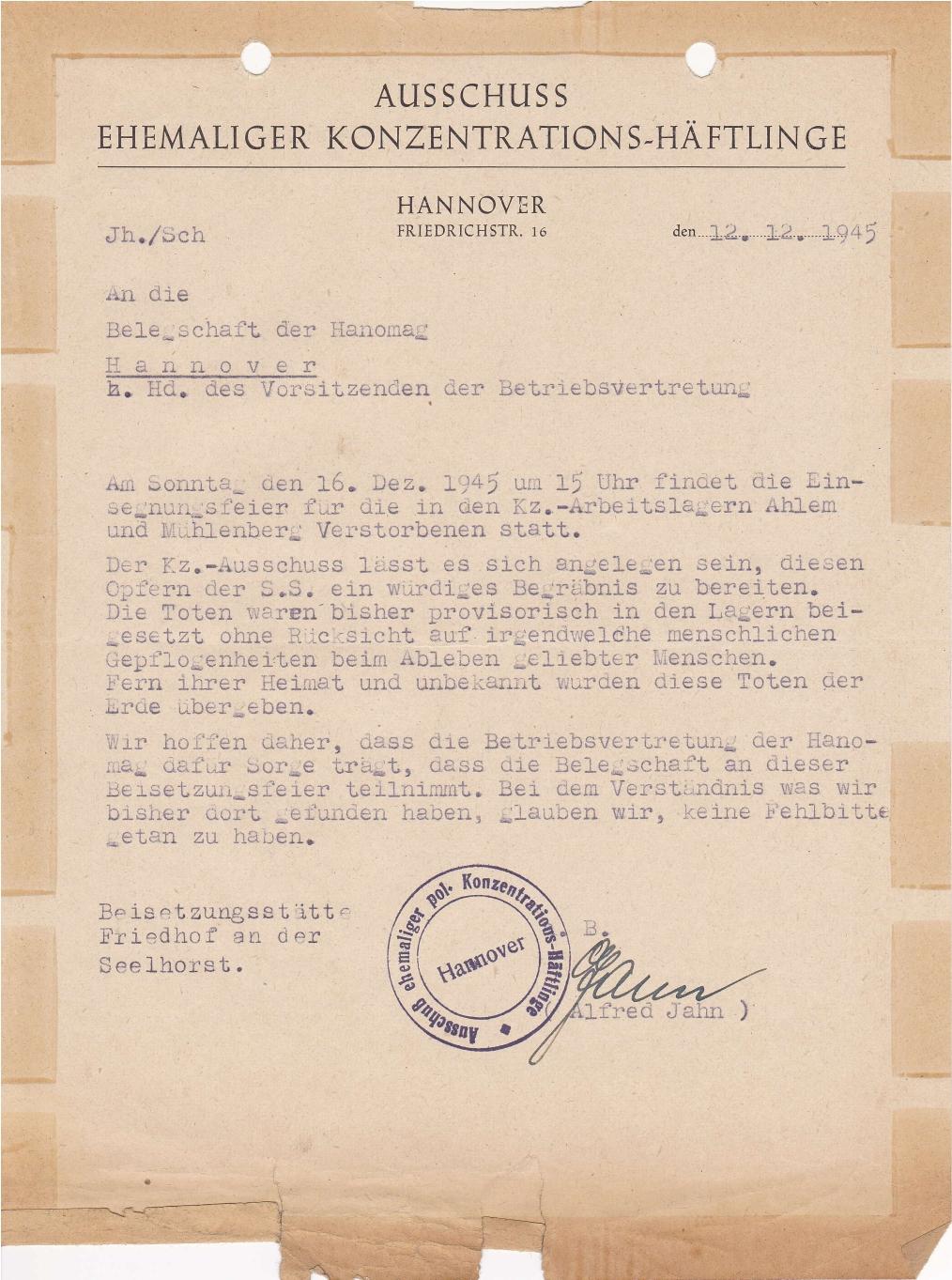1945-12 Anschreiben ehemaliger KZ-Häftlinge