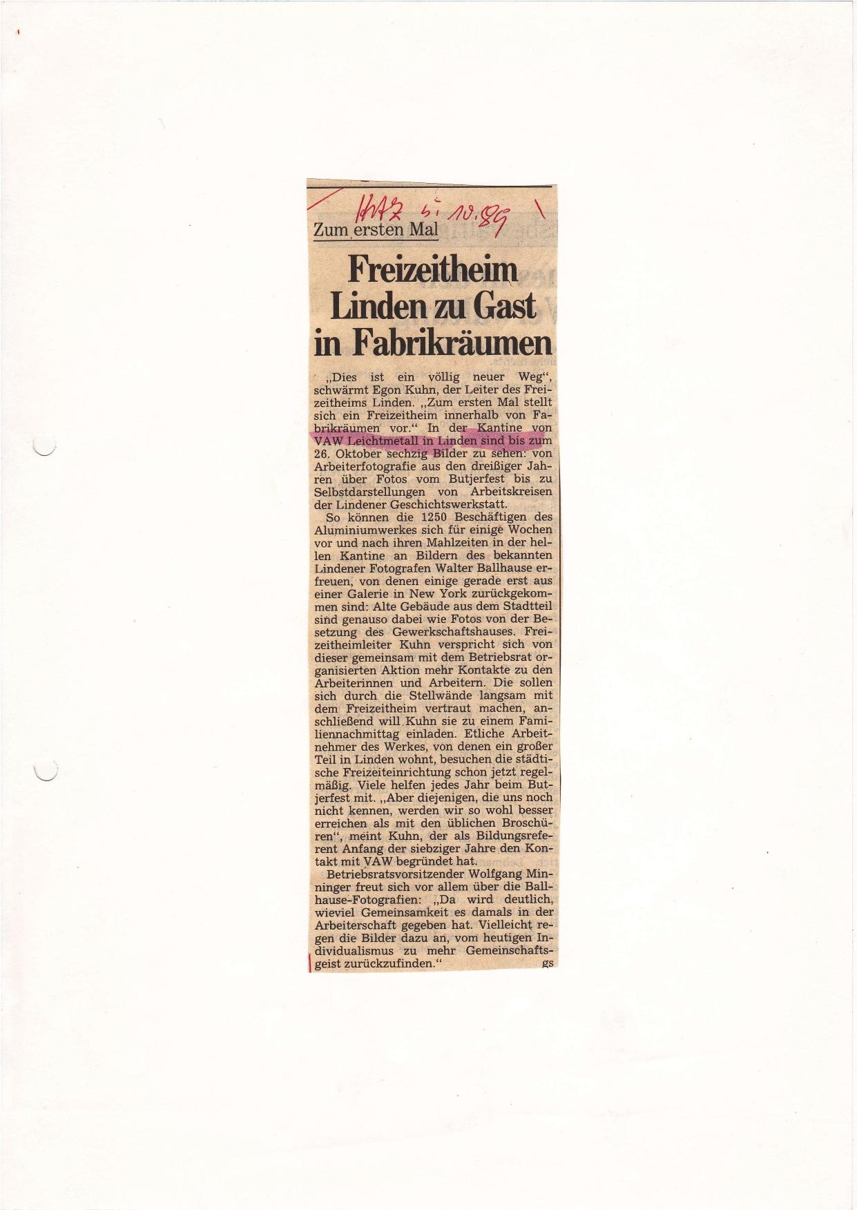 1989-10-05 Ausstellung Arbeiterfotografie in der Kantine