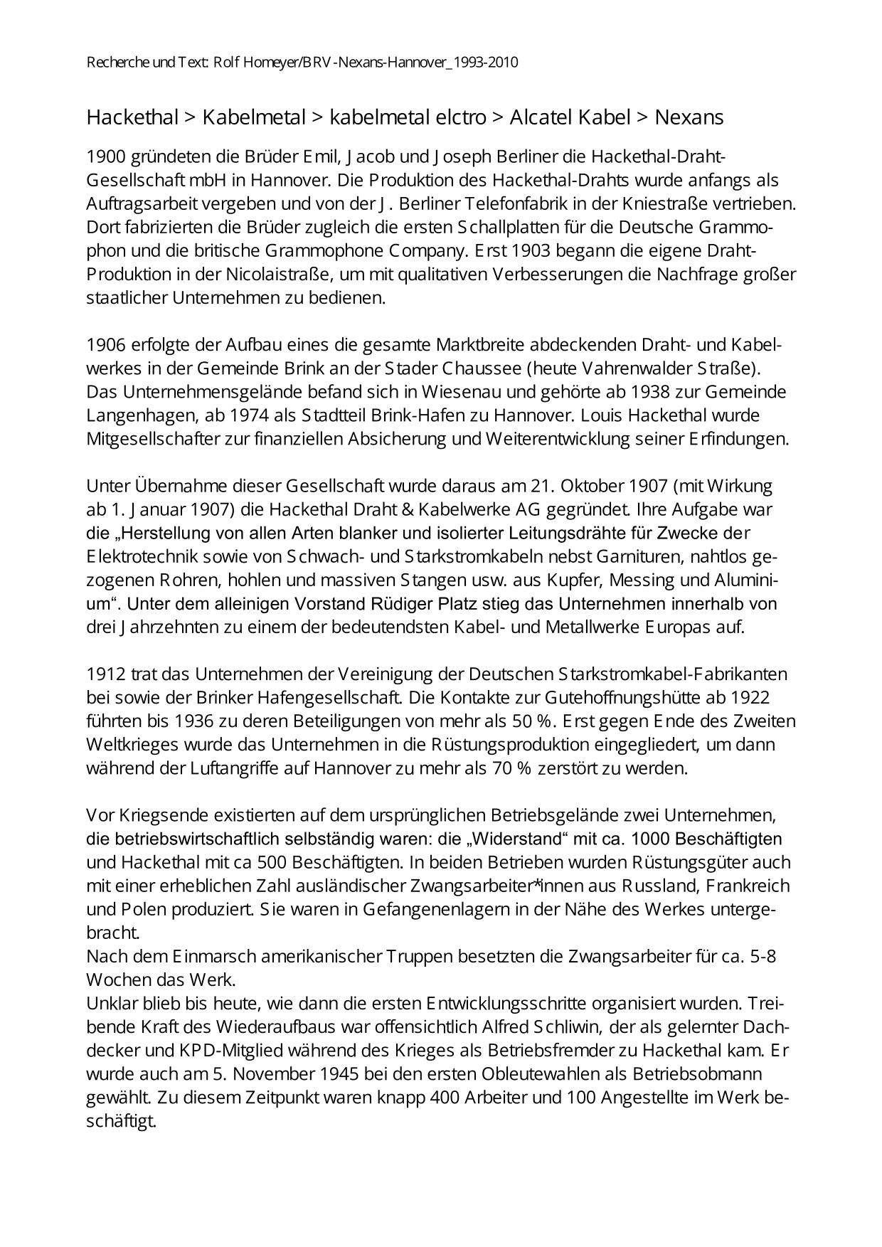Hackethal-kabelmetal-Nexans Historie
