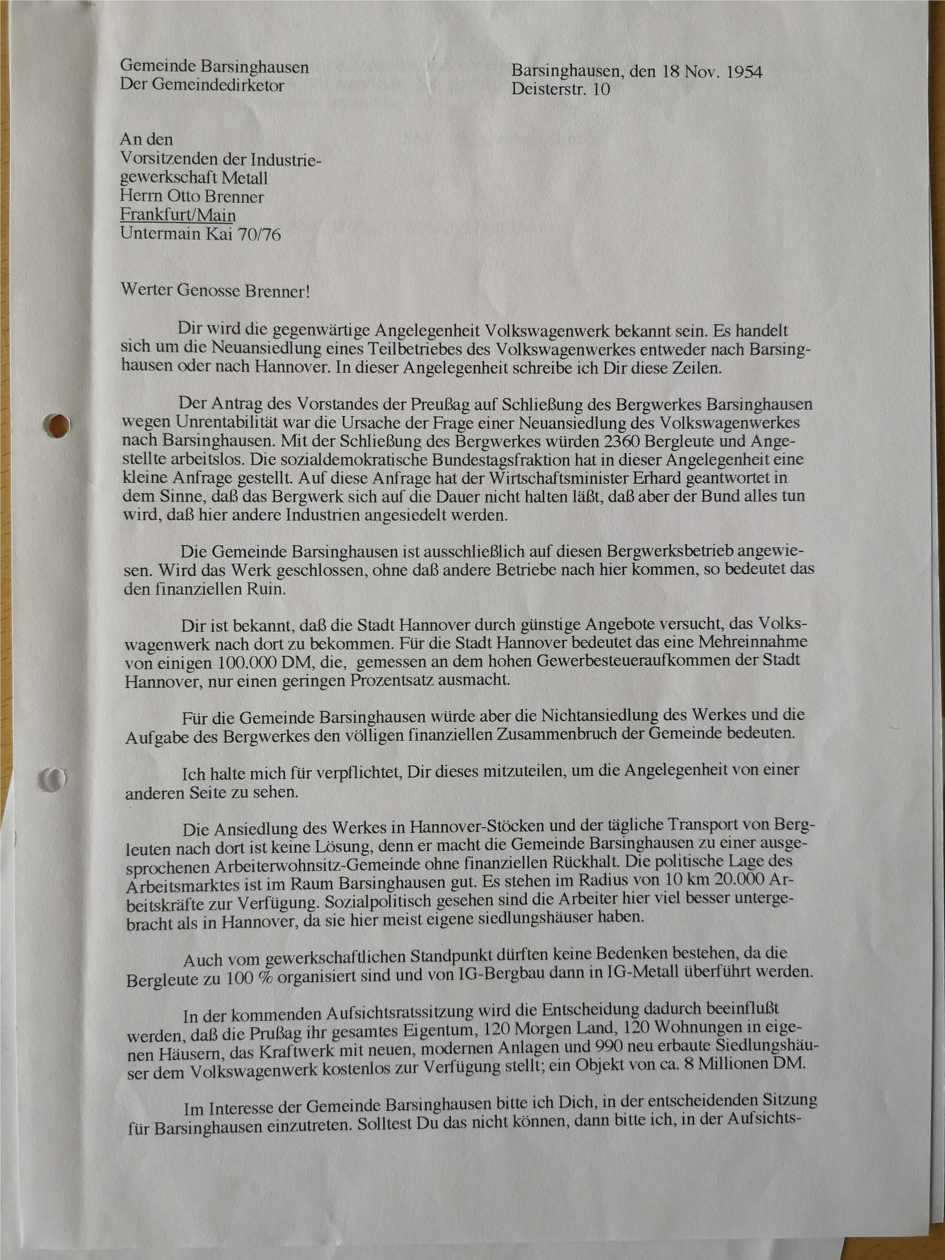 1954 Barsinghausen Brenner Brief