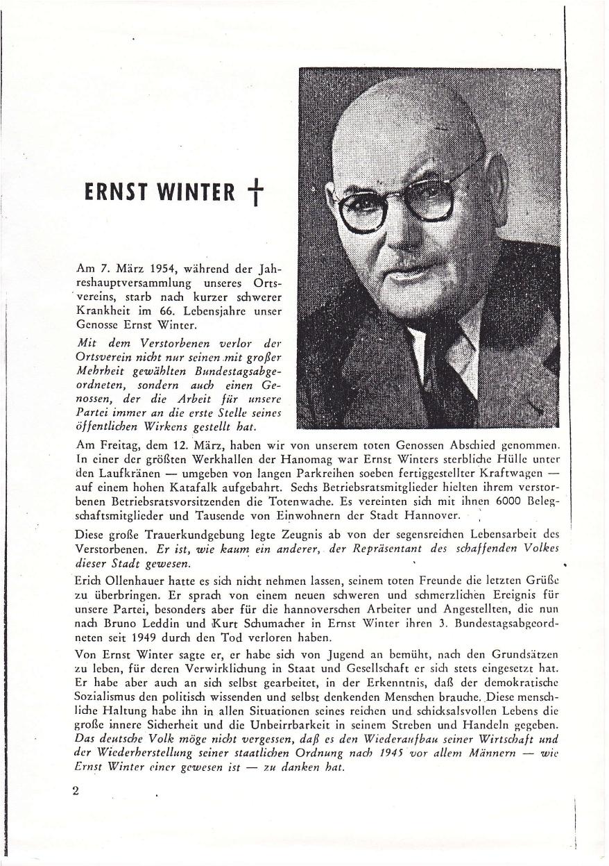 1954 Nachruf SPD-Ortsverein Ernst Winter