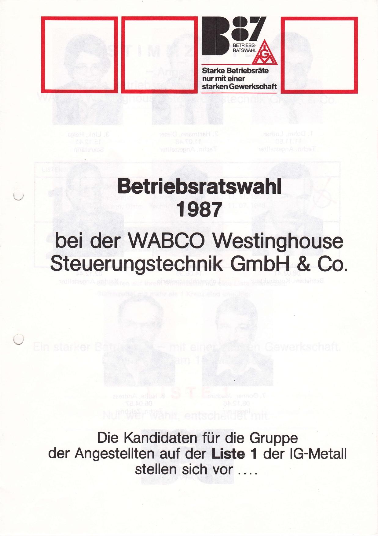 1987 BR-Wahl Angestellte WABCO Westinghouse Steuerungstechnik