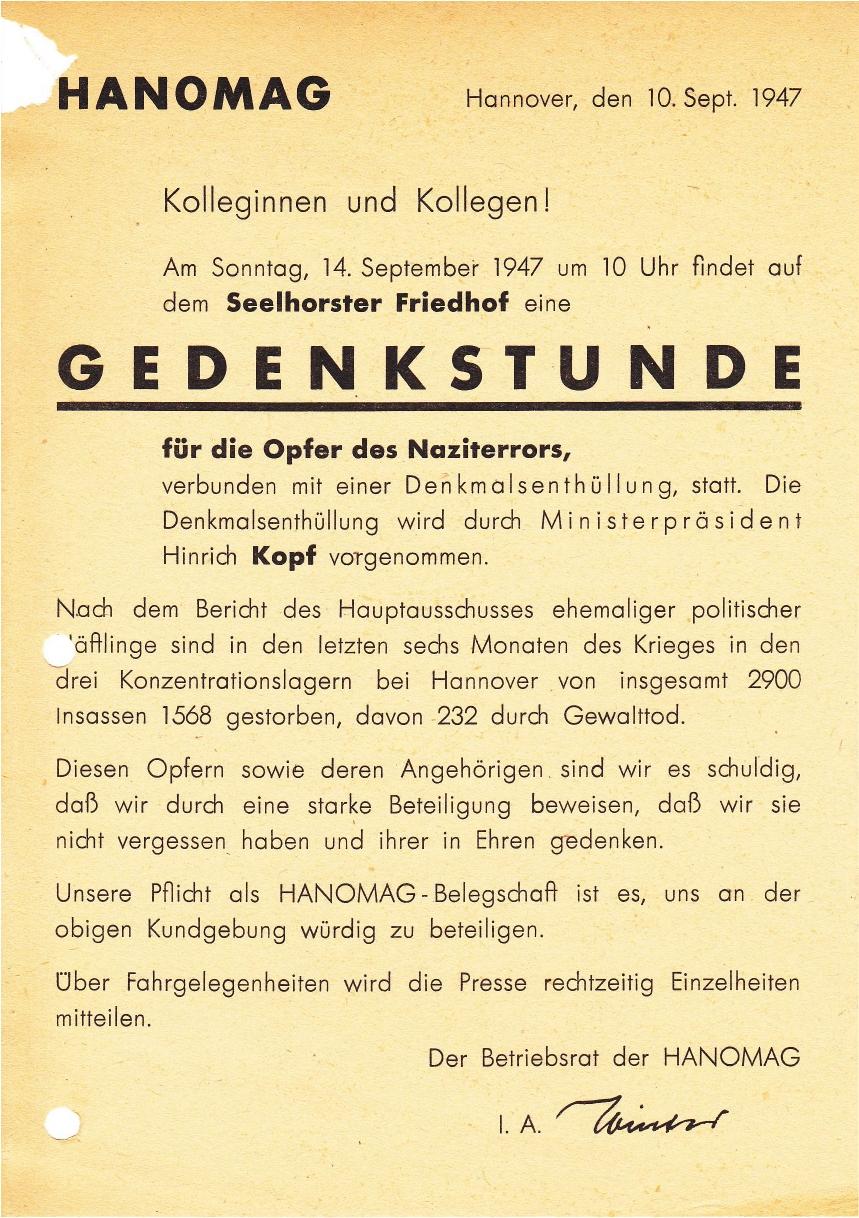 1947-09-14 Aufruf zur Gedenkstunde