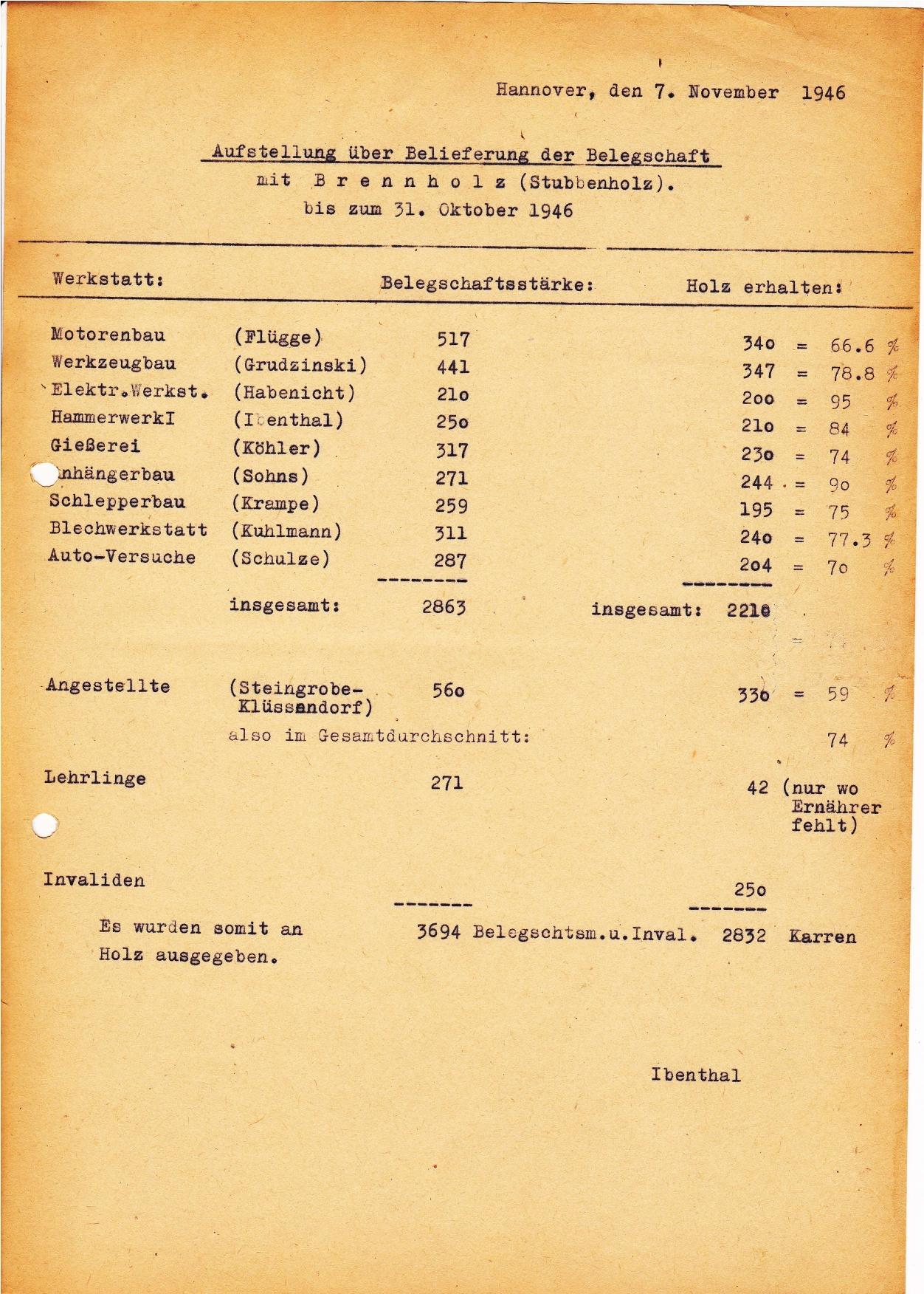 1946-11 Beispiel Holzversorgung über Betrieb Hanomag