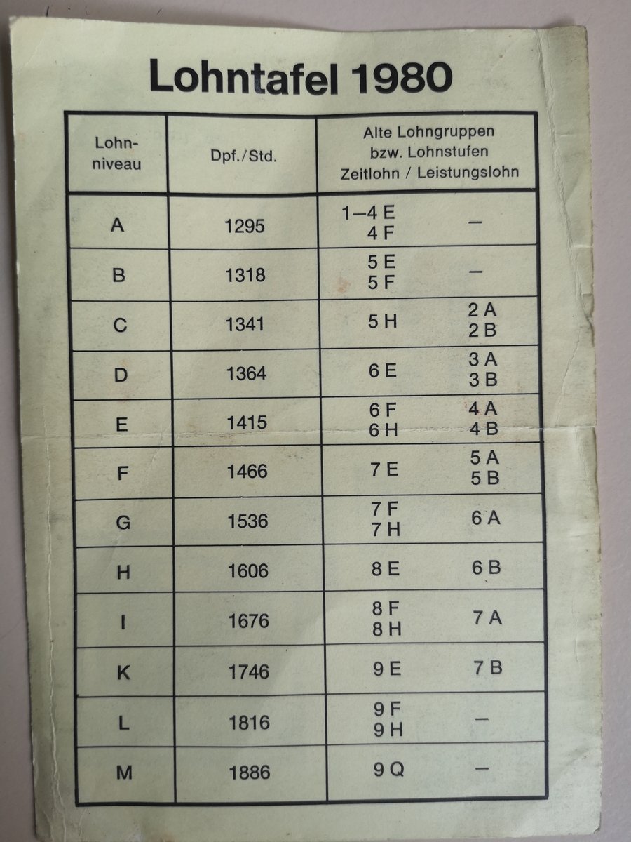 1980 VW Lohntafel mit alten und neuen Lohngefüge
