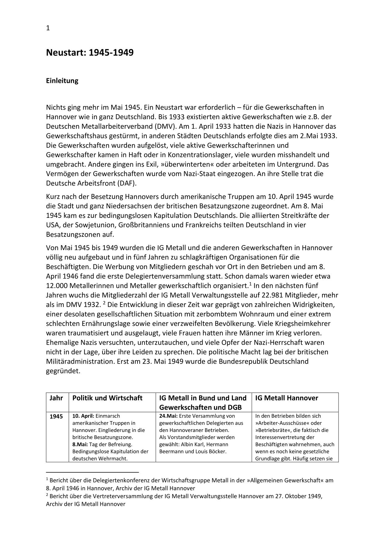 Hier stehen die Kapitel des Geschichtsbuchs "Streiten und gestalten. Die IG Metall Hannover von 1945 bis 2010" mit Fußnoten und Quellenangaben sowie zahlreiche ergänzende Materialien zum Download bereit.