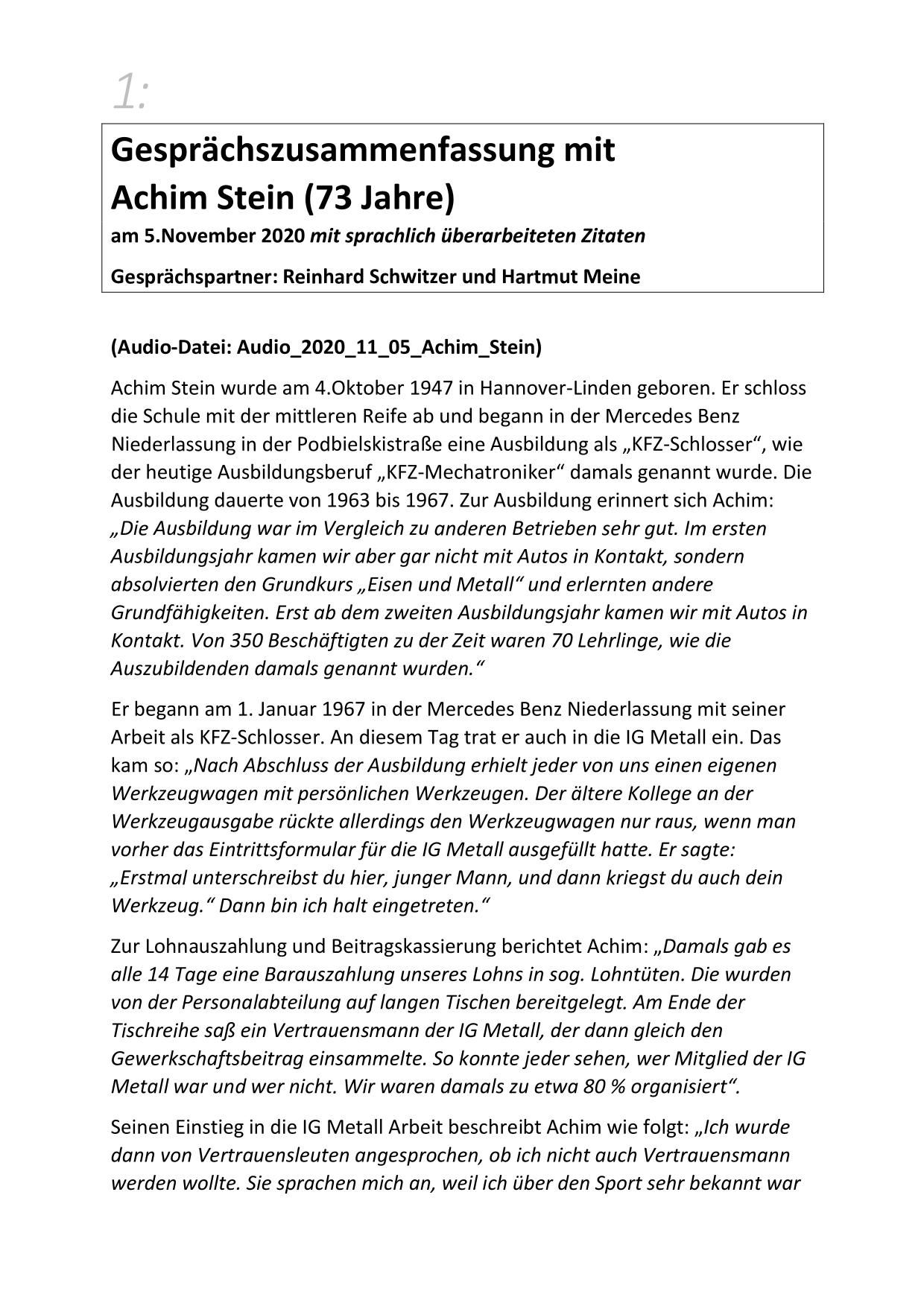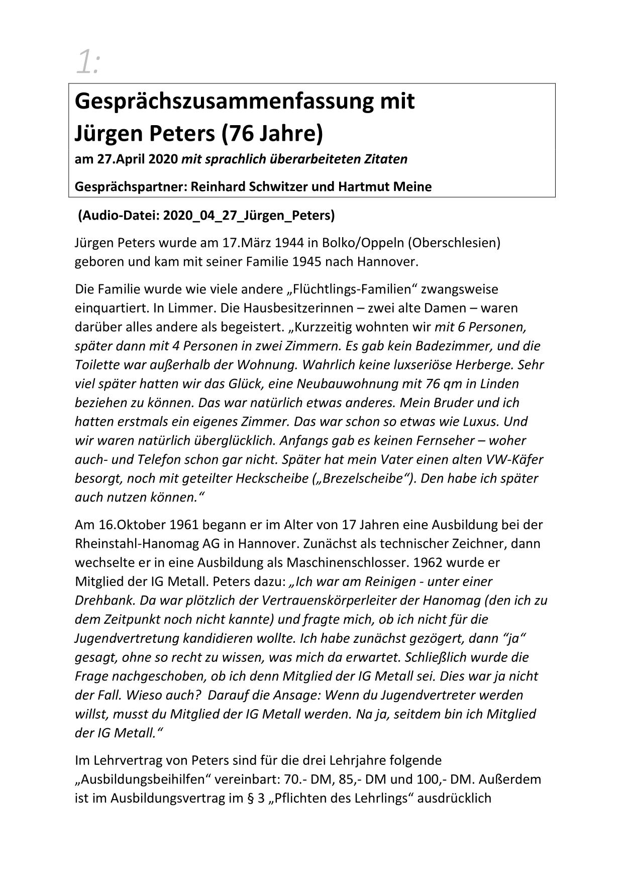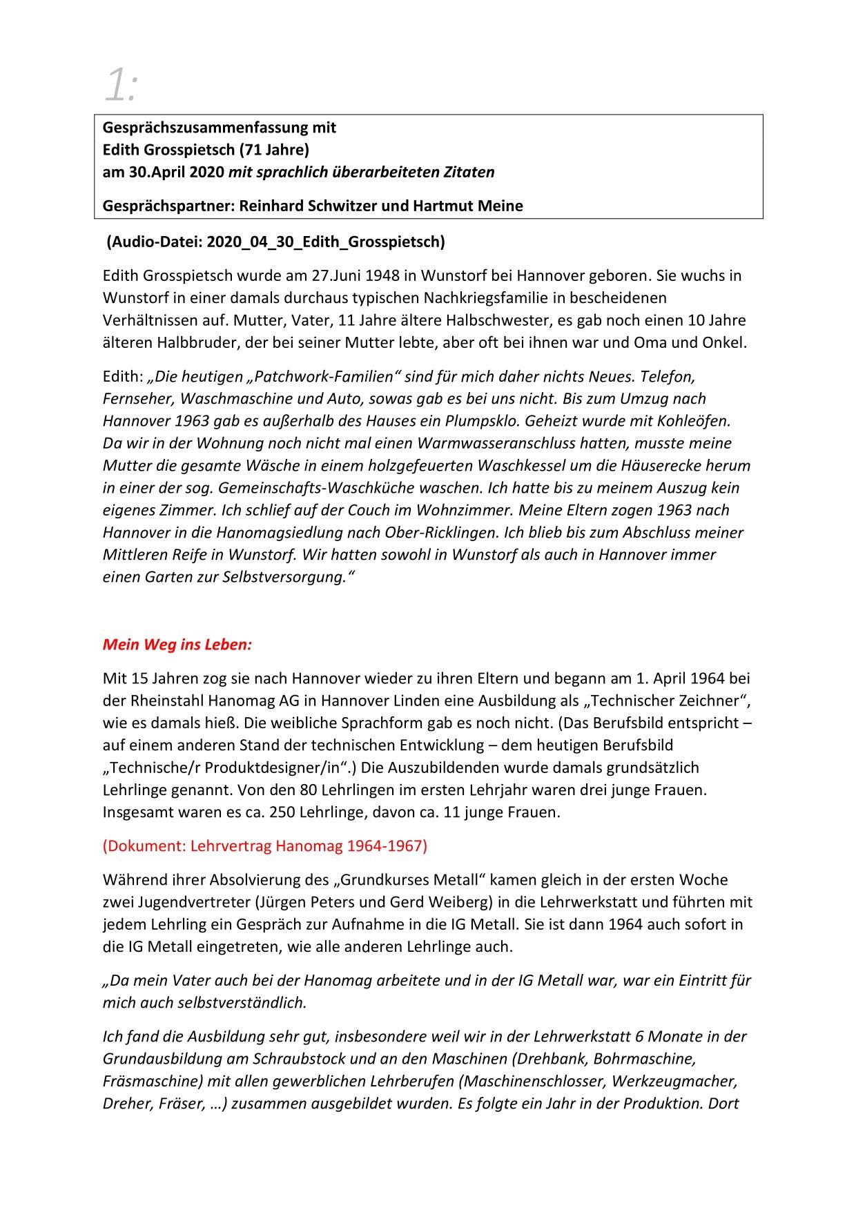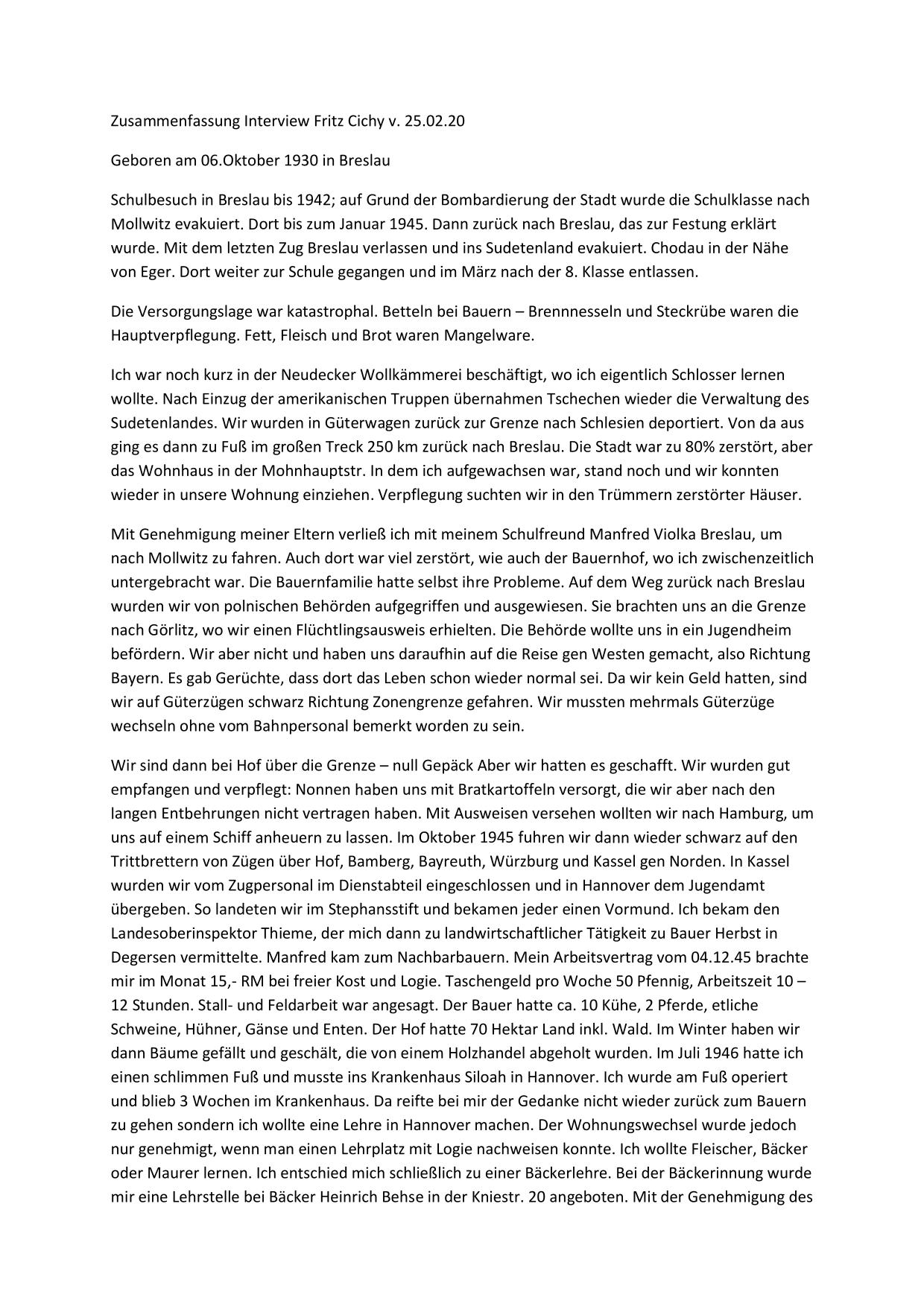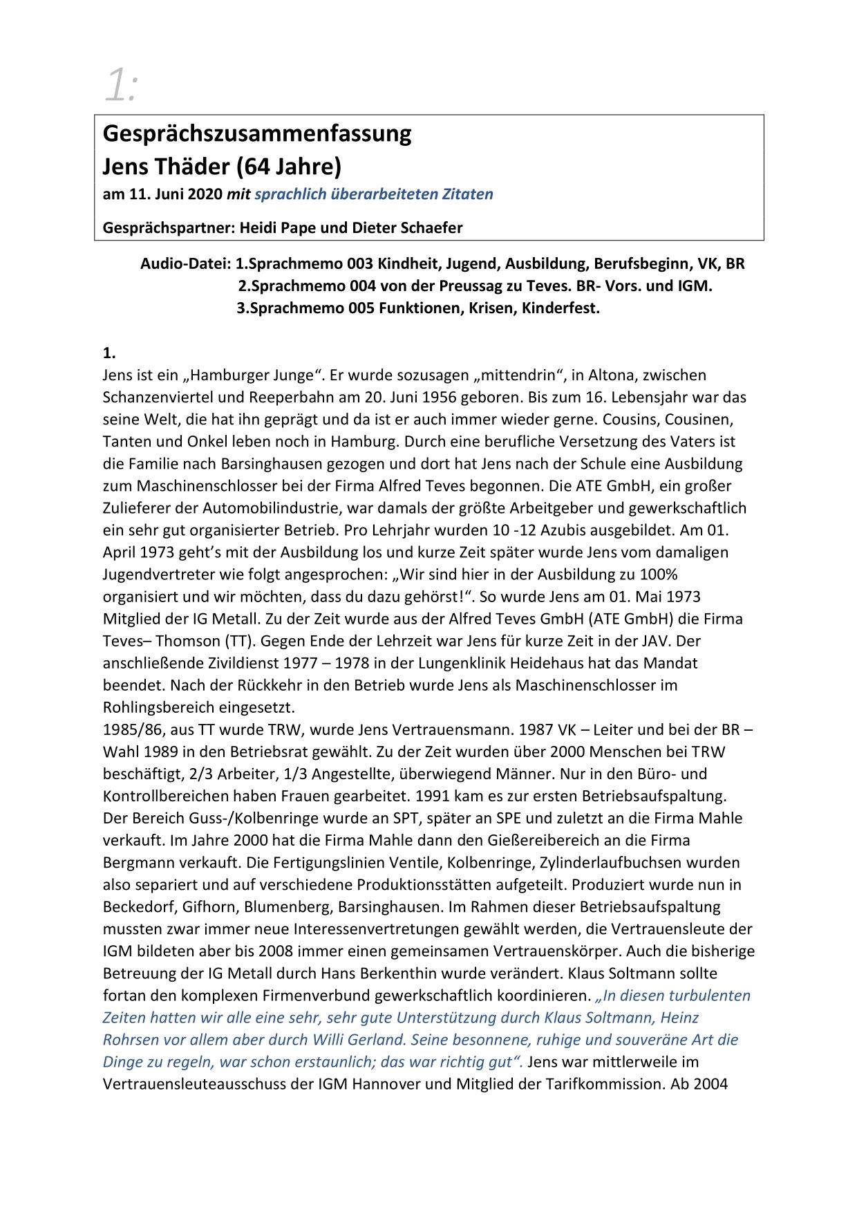 Hier stehen ausführliche Zusammenfassungen der Gespräche mit Zeitzeugen bereit, sortiert nach Nachnahmen.