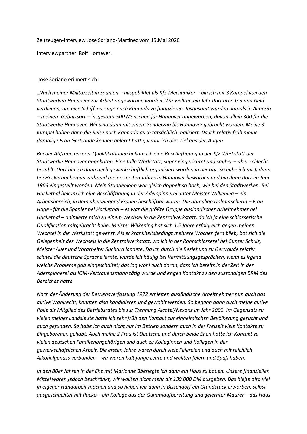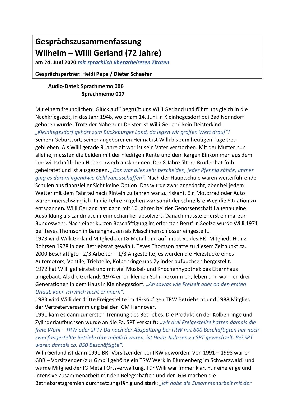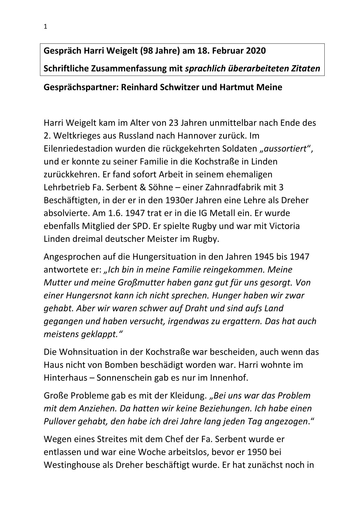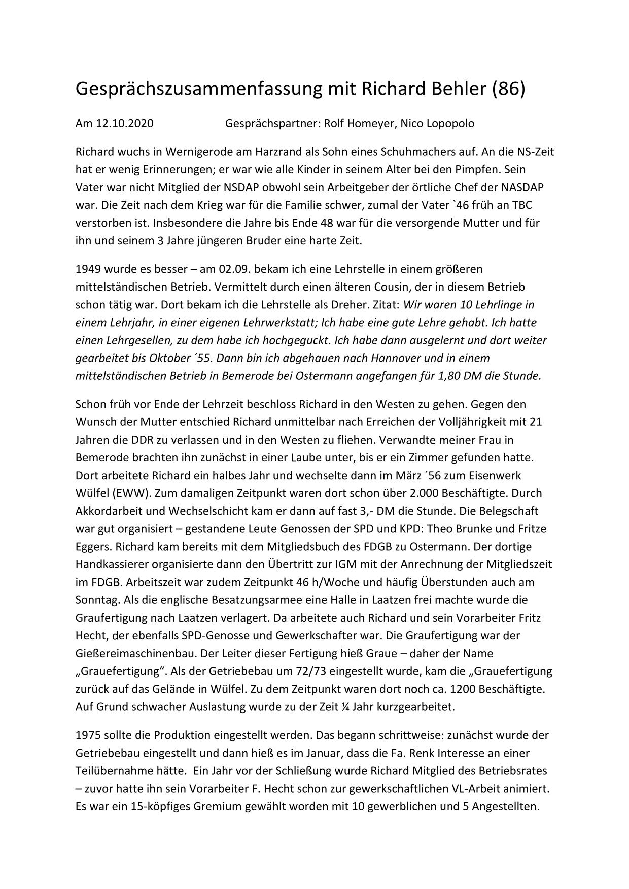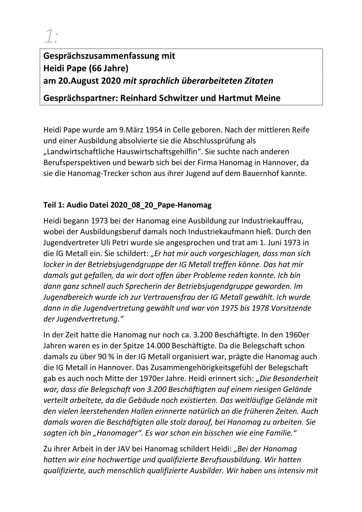 Hier stehen ausführliche Zusammenfassungen der Gespräche mit Zeitzeugen bereit, sortiert nach Nachnahmen.