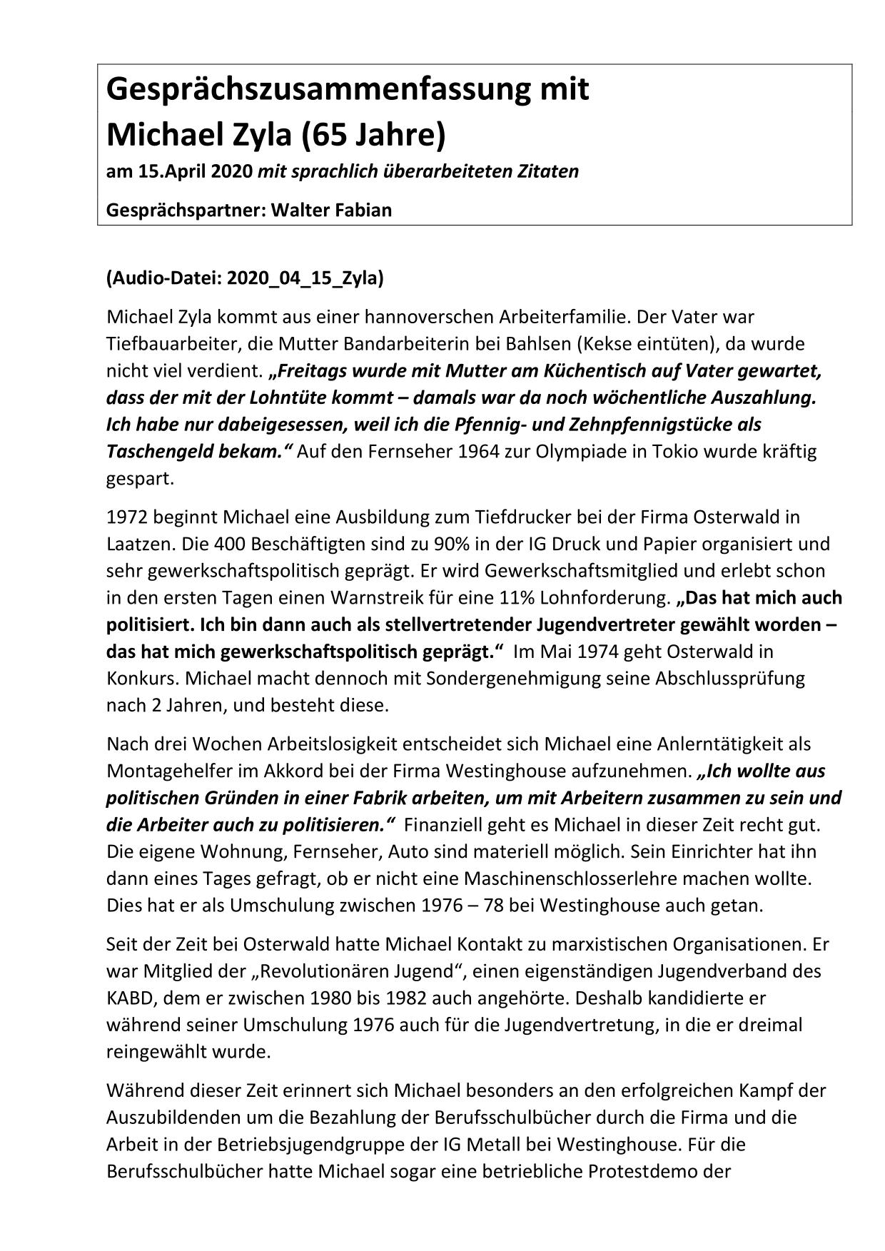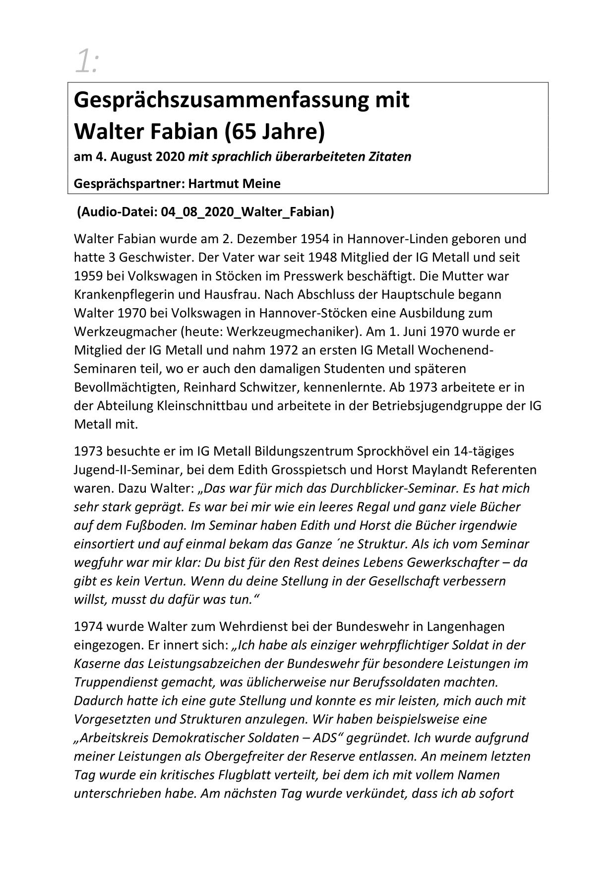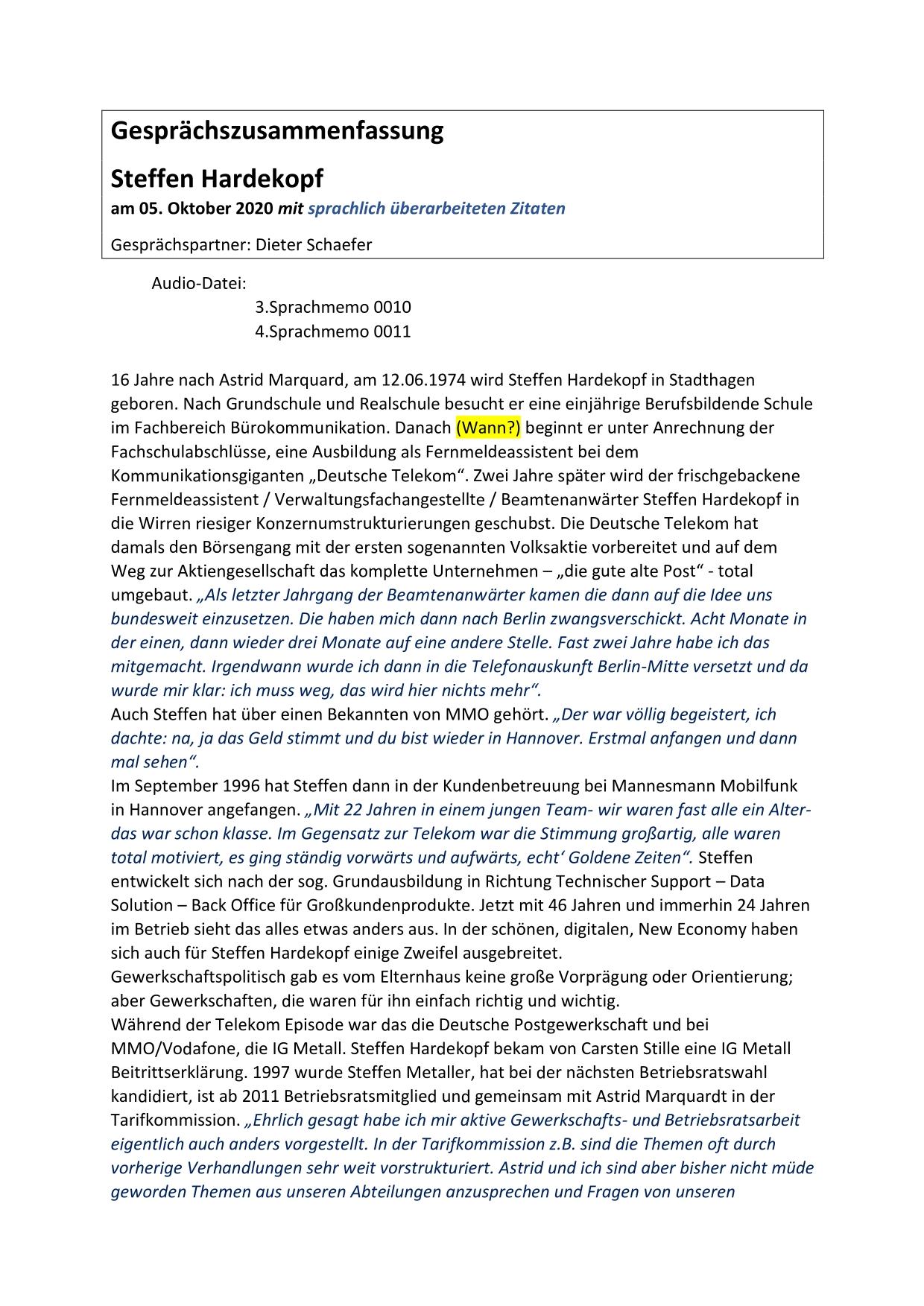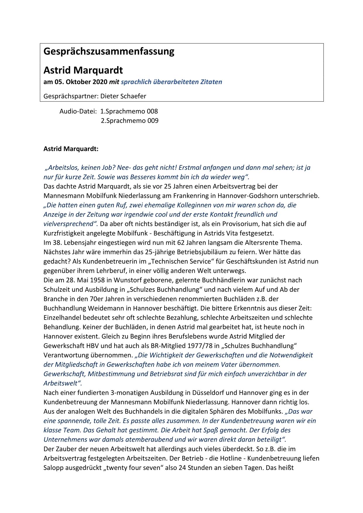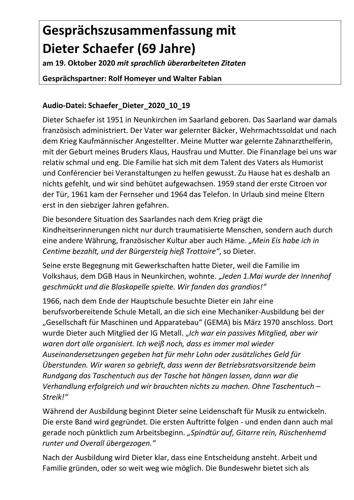 Hier stehen ausführliche Zusammenfassungen der Gespräche mit Zeitzeugen bereit, sortiert nach Nachnahmen.