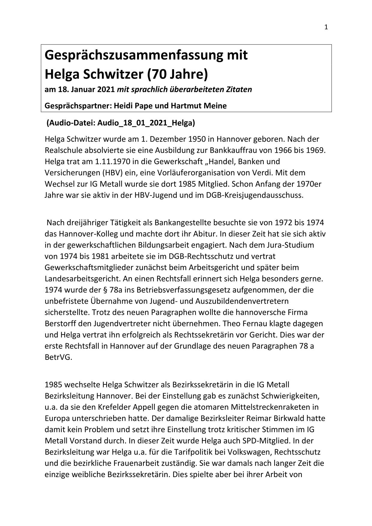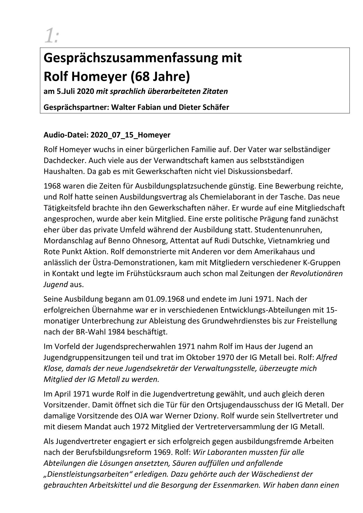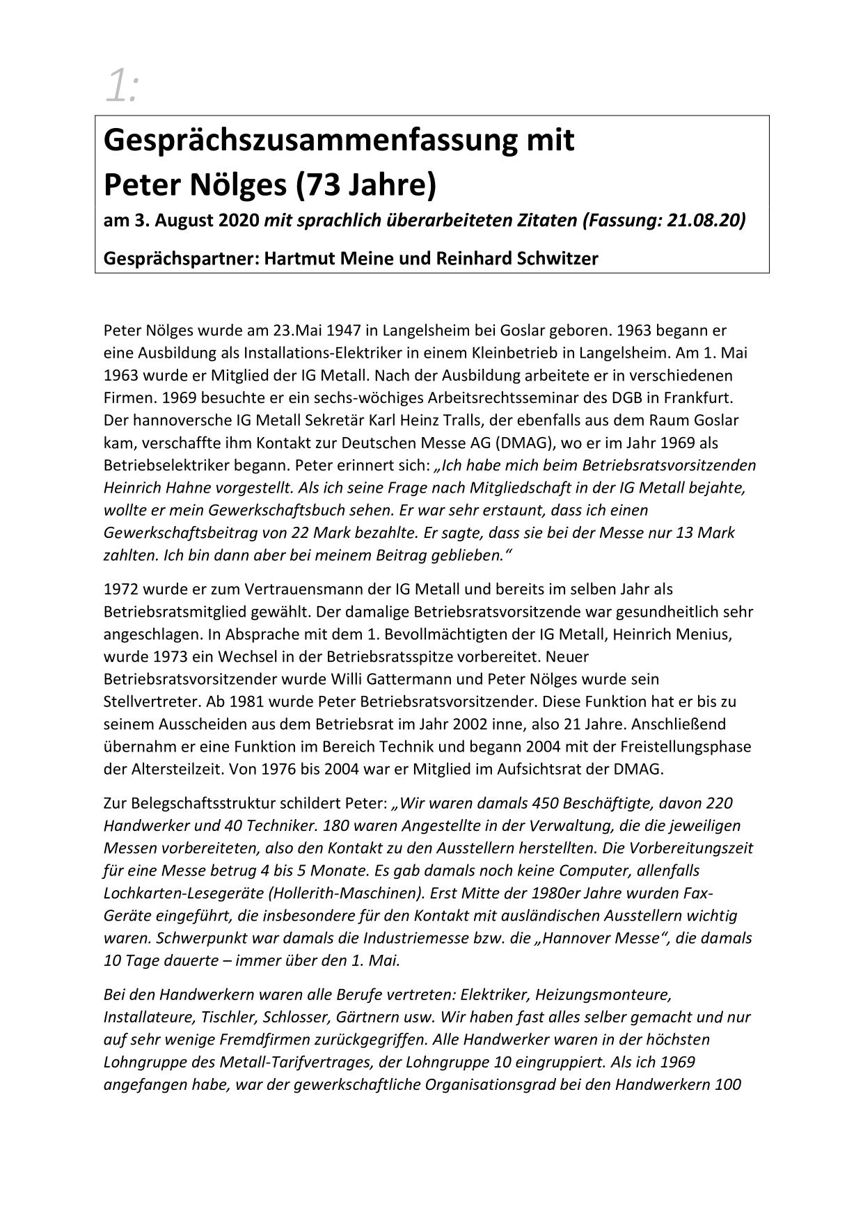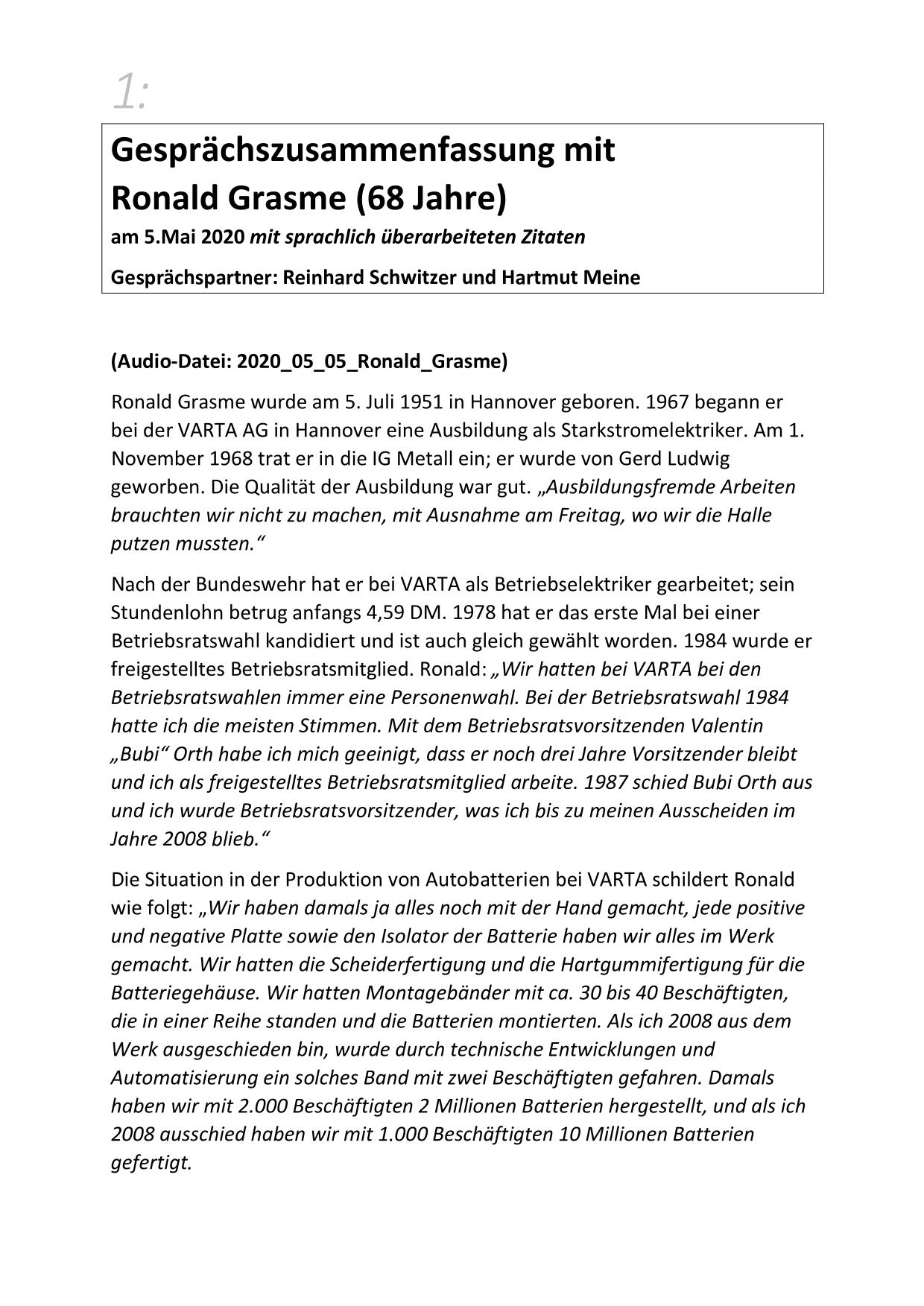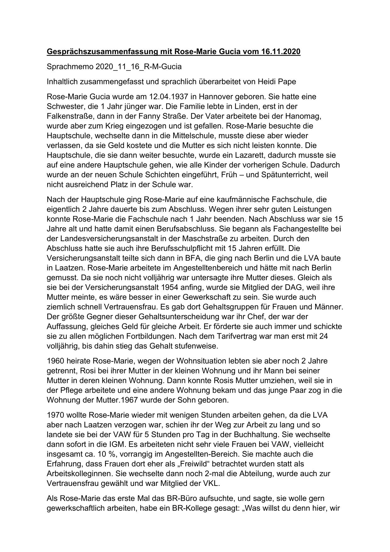 Hier stehen ausführliche Zusammenfassungen der Gespräche mit Zeitzeugen bereit, sortiert nach Nachnahmen.