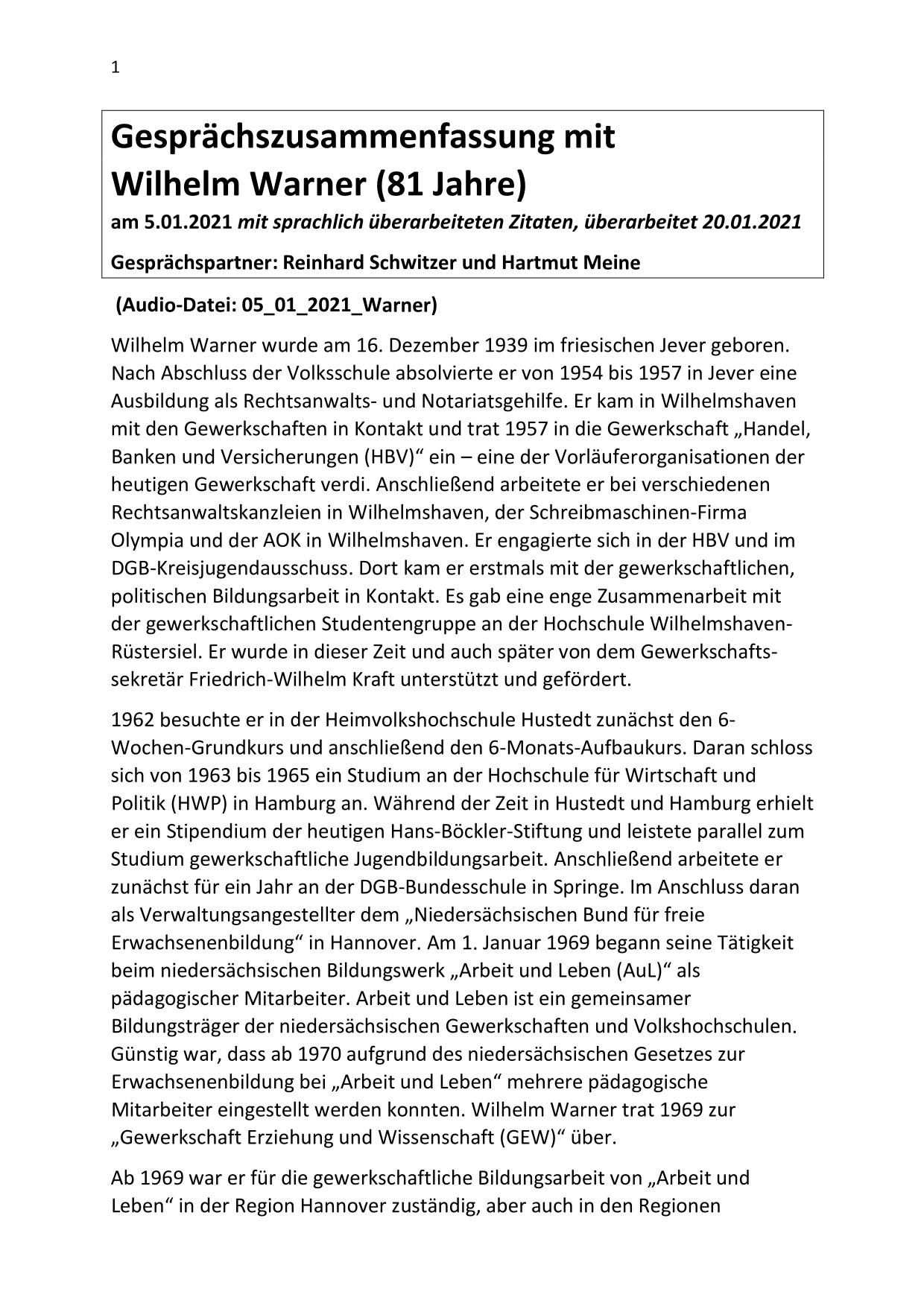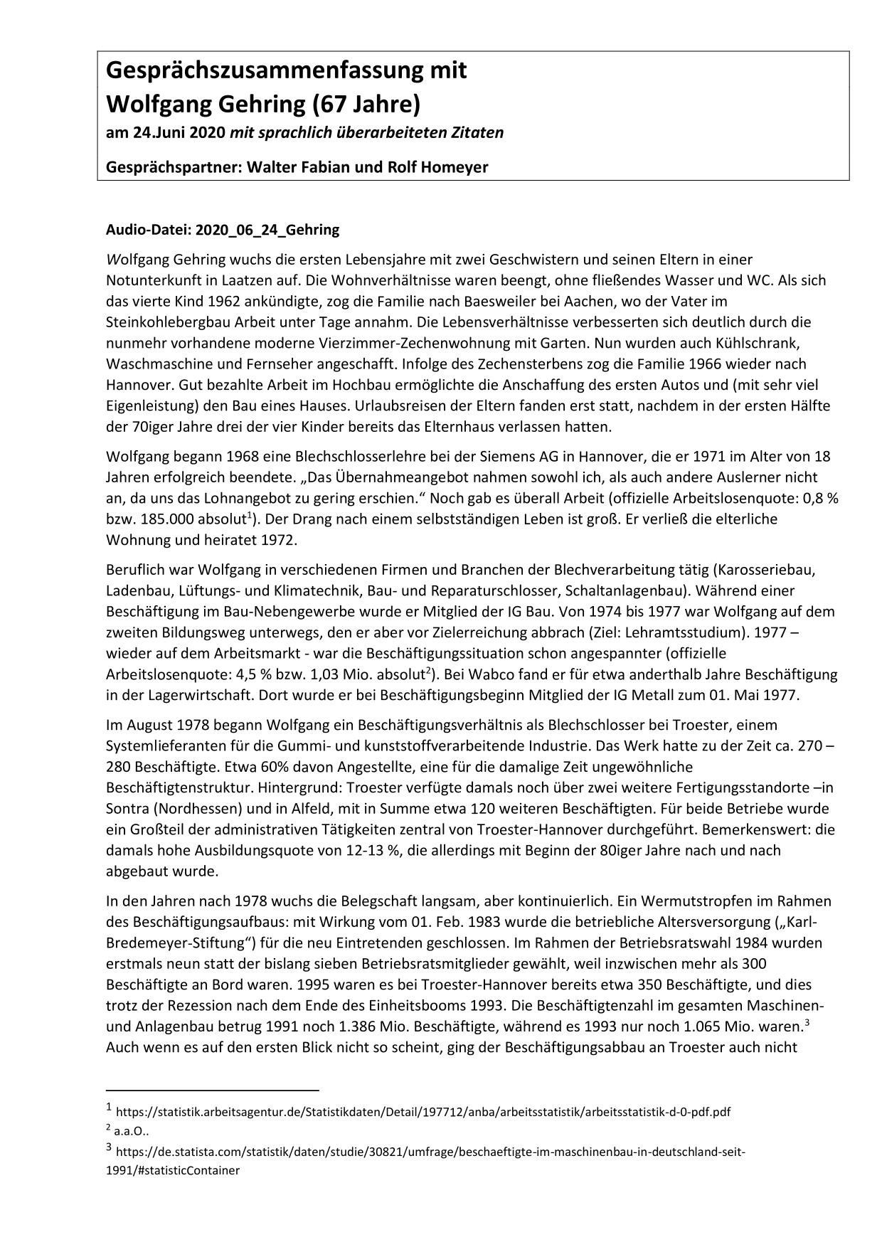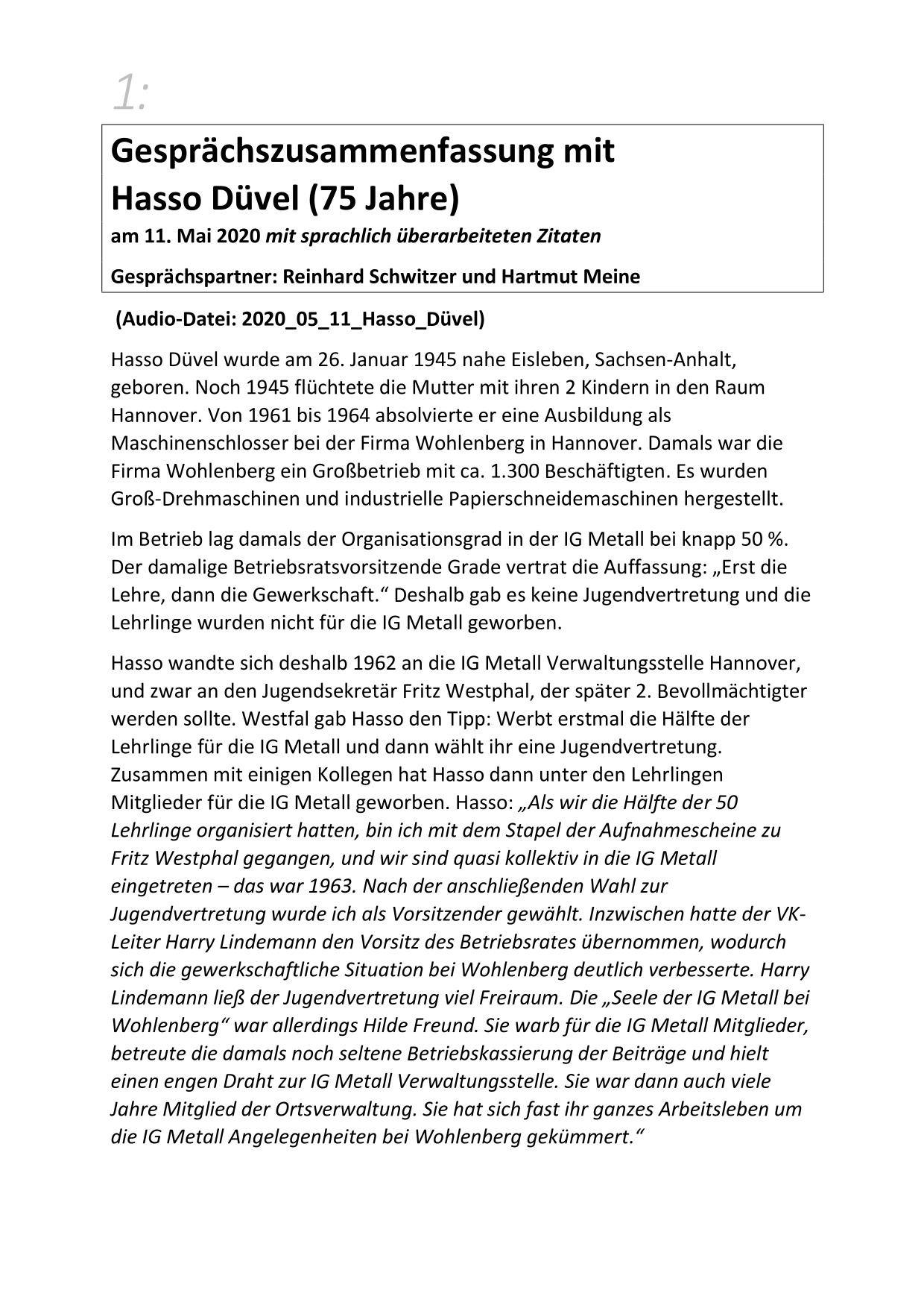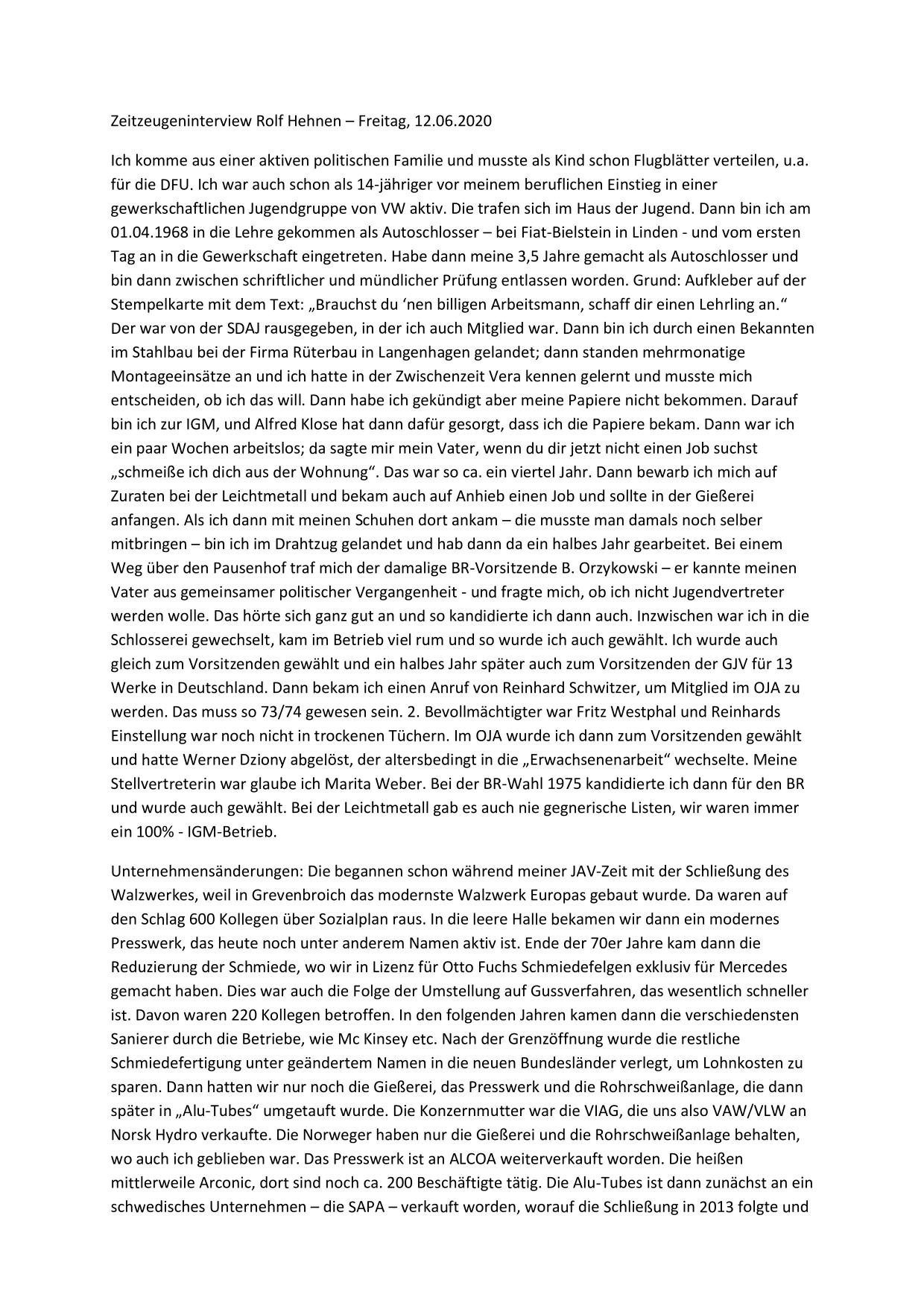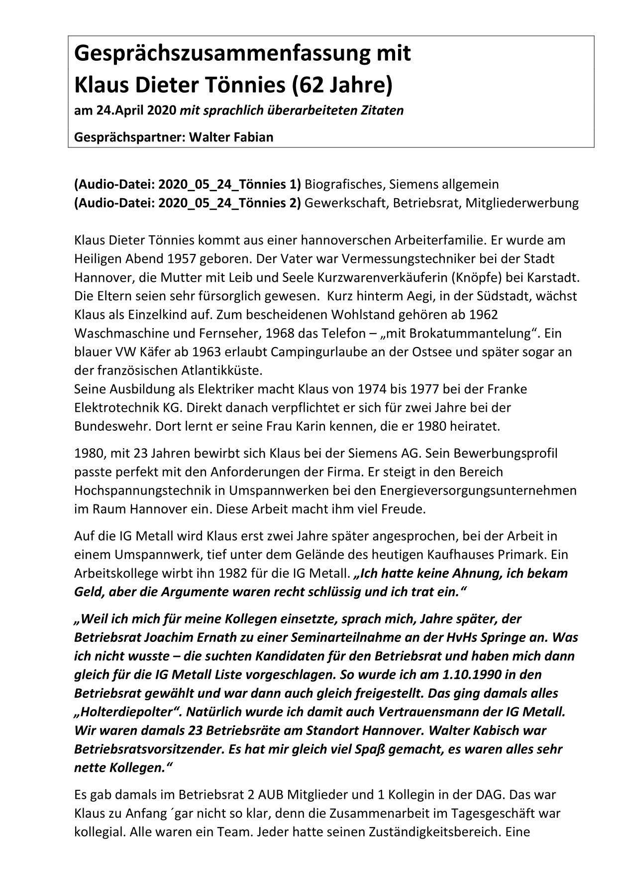 Hier stehen ausführliche Zusammenfassungen der Gespräche mit Zeitzeugen bereit, sortiert nach Nachnahmen.