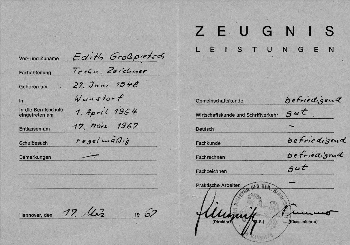 Grosspietsch Edith Lehrvertrag und Zeugnisse