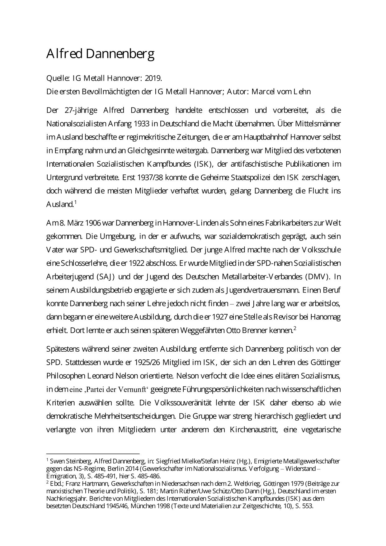 Dannenberg Alfred Lebenslauf