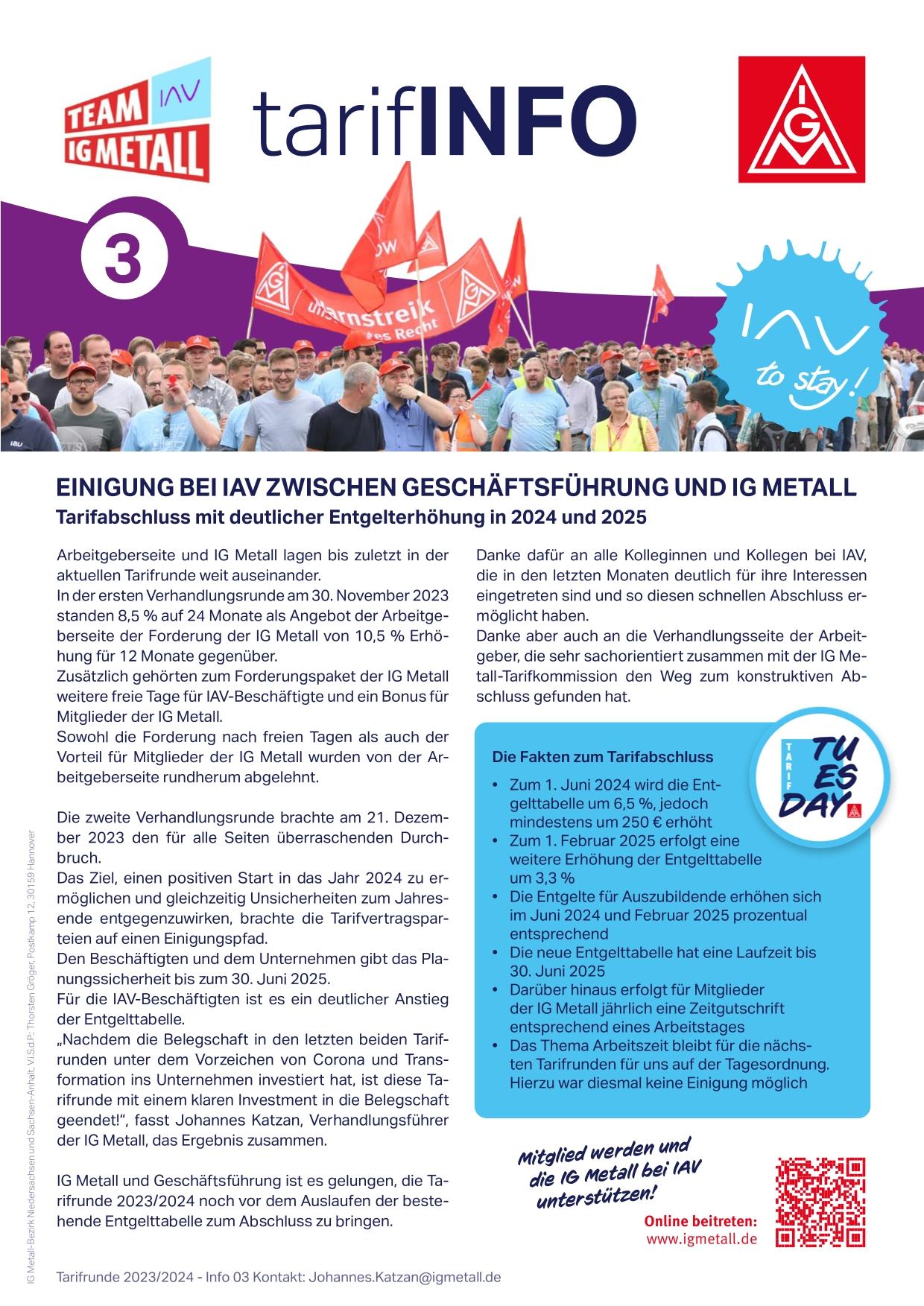 IAV und IG Metall erzielen Tarifabschluss Deutliche Entgelterhöhung in 2024 und 2025