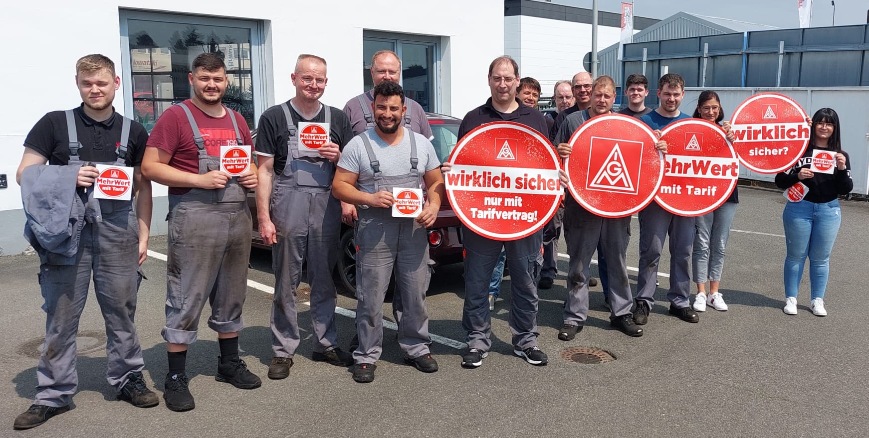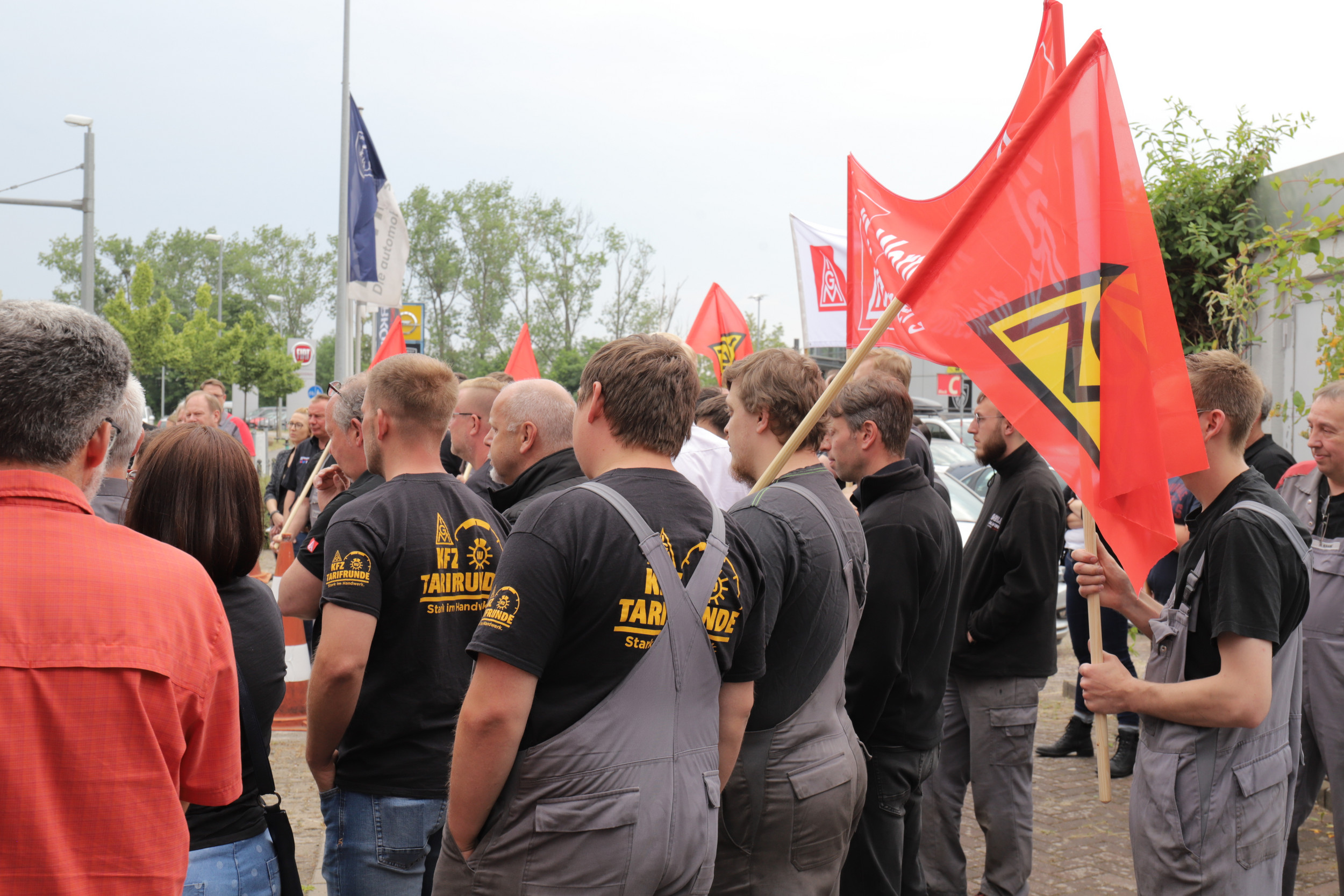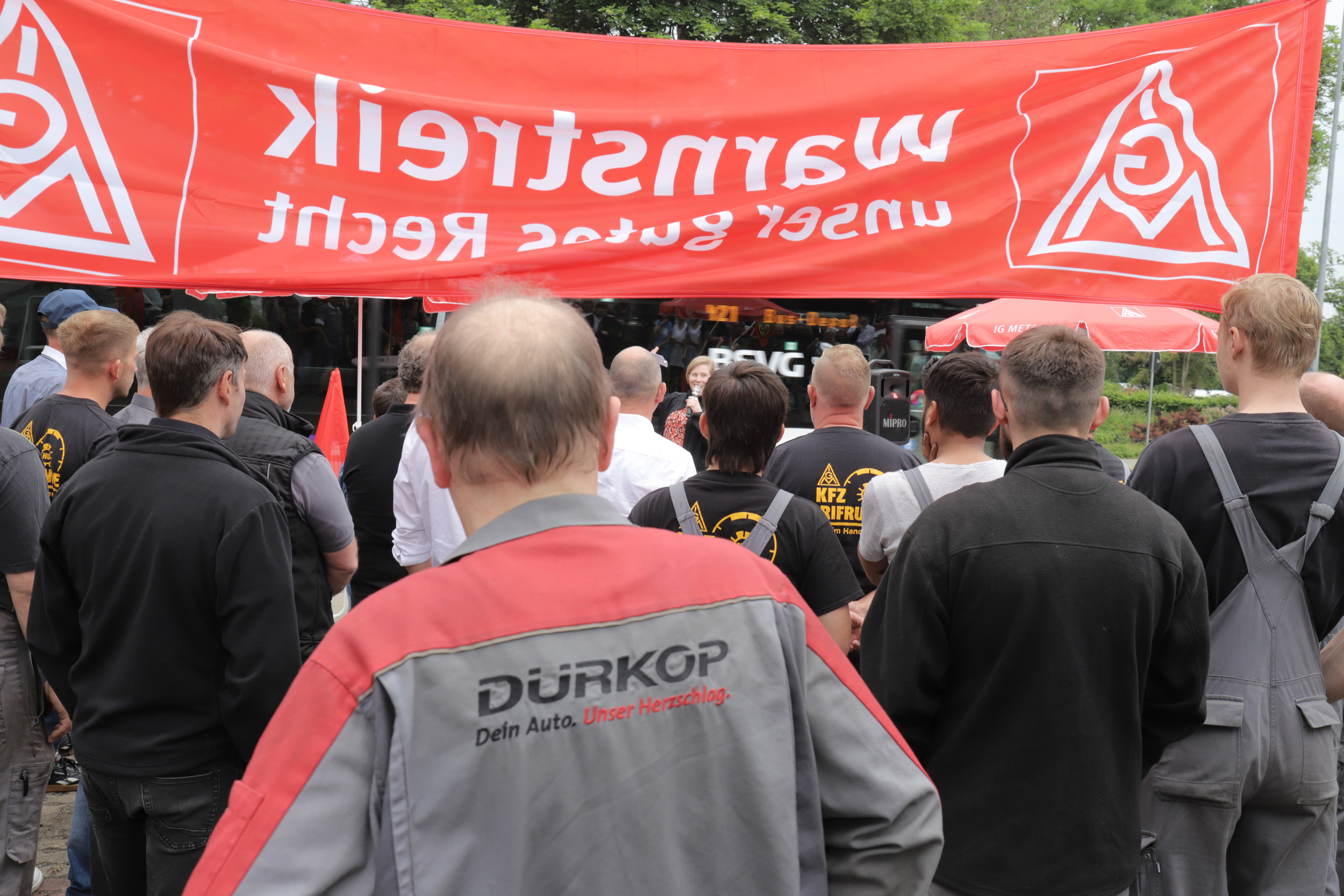 Daher haben die Beschäftigten am vergangenen Freitag, den 9.6.2023 ihrer Forderung nach fairen Arbeitsbedingungen und der Aufnahme von Verhandlungen durch einen ersten Warnstreik Nachdruck verliehen. Die Büros und Hallen waren für eine Stunde leergefegt, Hebebühne blieben unten und keine Schraube hat sich gedreht. Markus Wente: „Für die meisten Kolleginnen und Kollegen war das der erste Warnstreik, den sie je erlebt haben. Die Stimmung ist entschlossen und kämpferisch und sie sind bereit für ihre Forderung im Zweifel den Hammer erneut liegen zu lassen.“