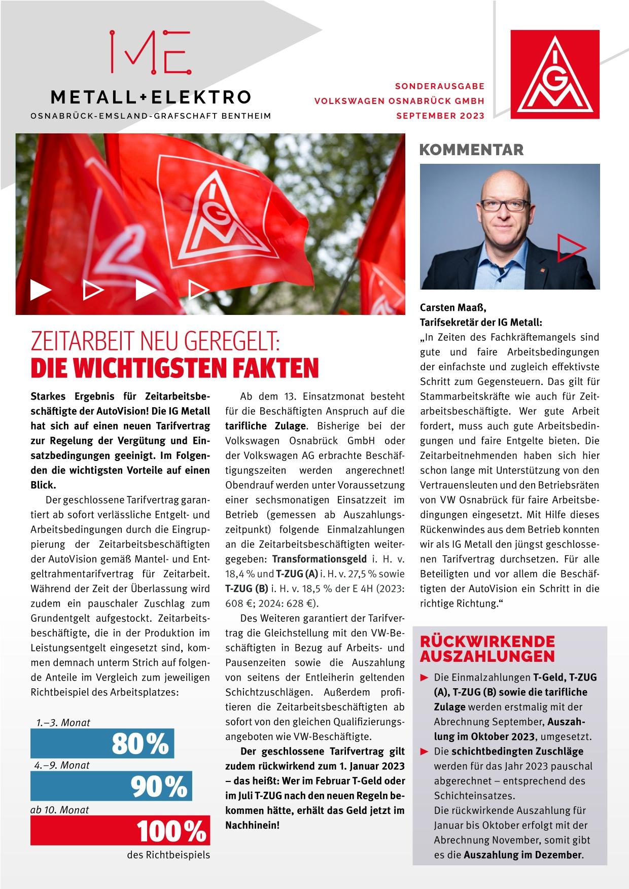 Zeitarbeit neu geregelt bei Volkswagen Osnabrück GmbH