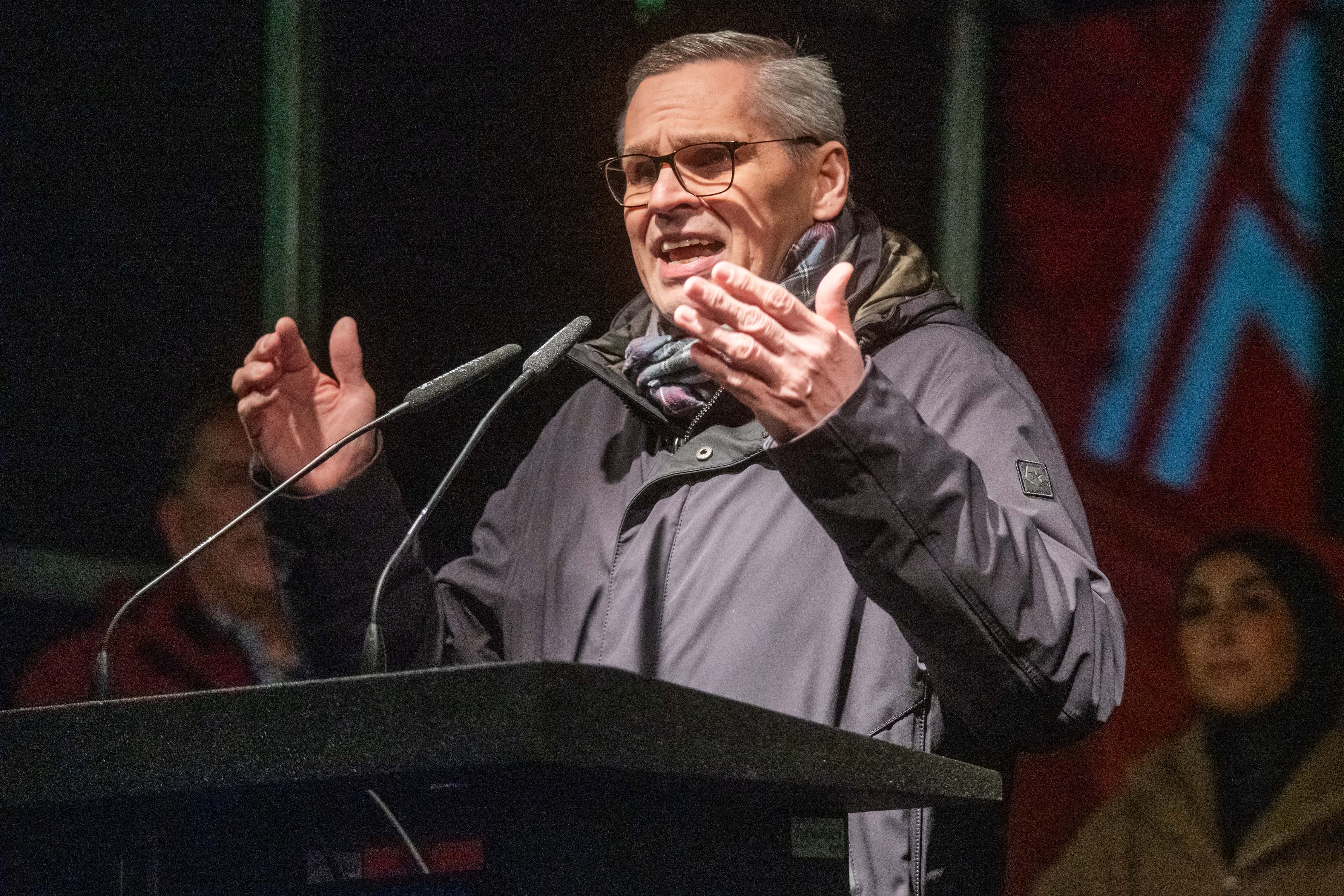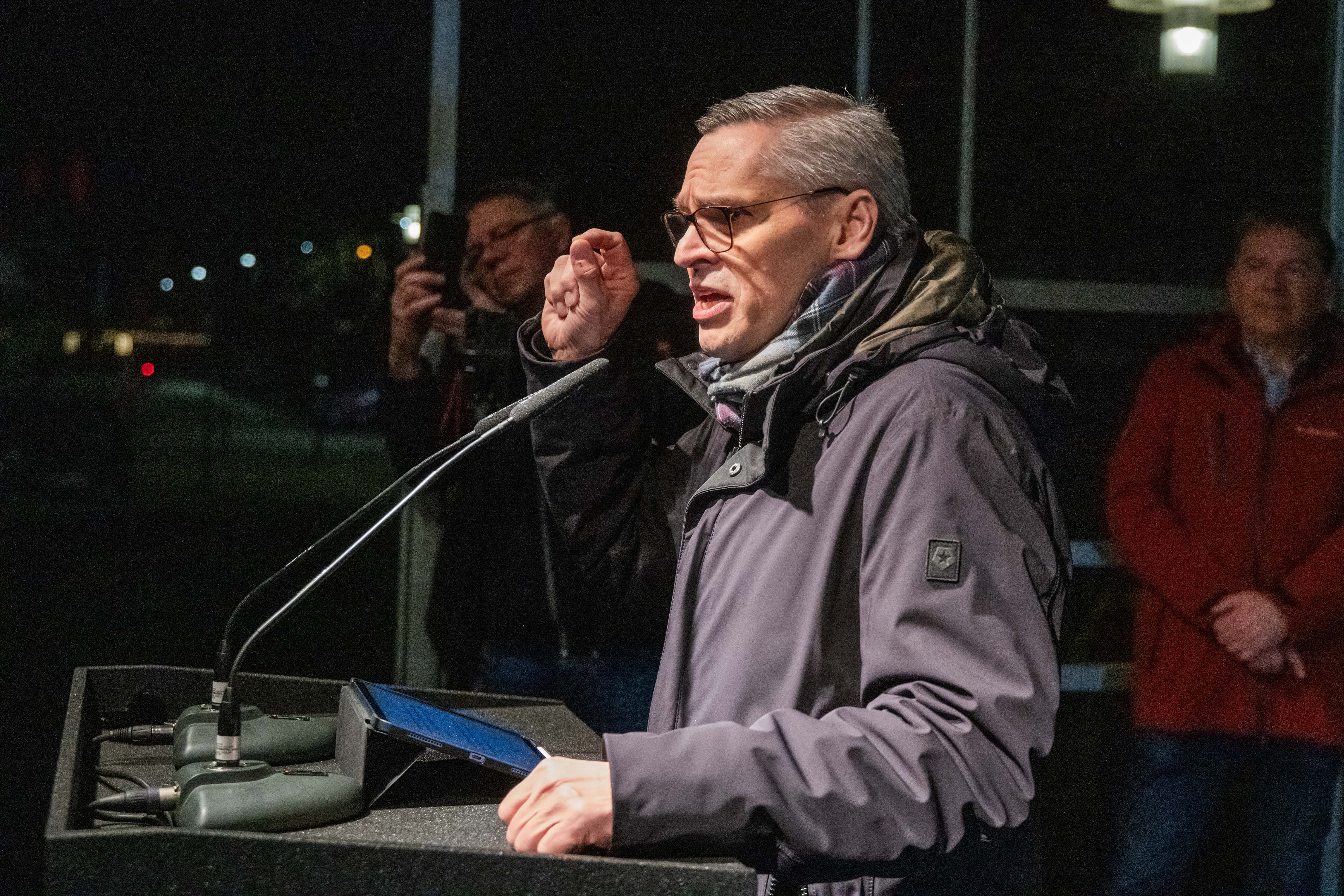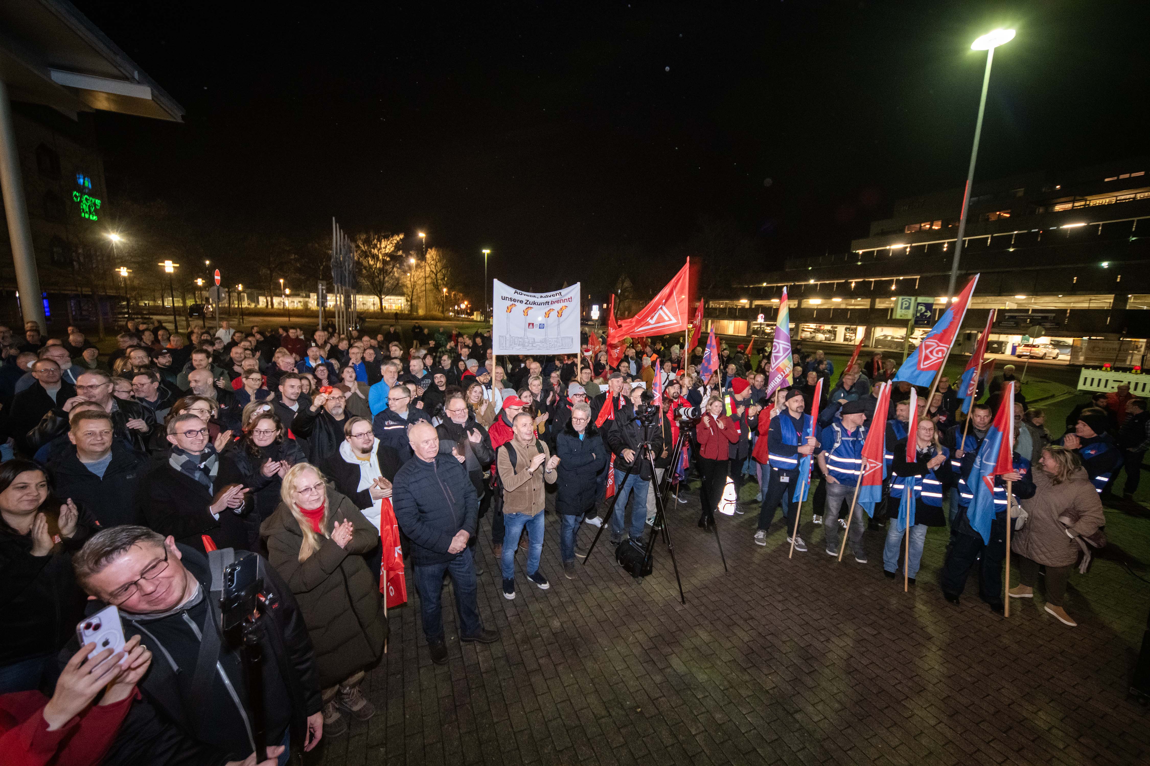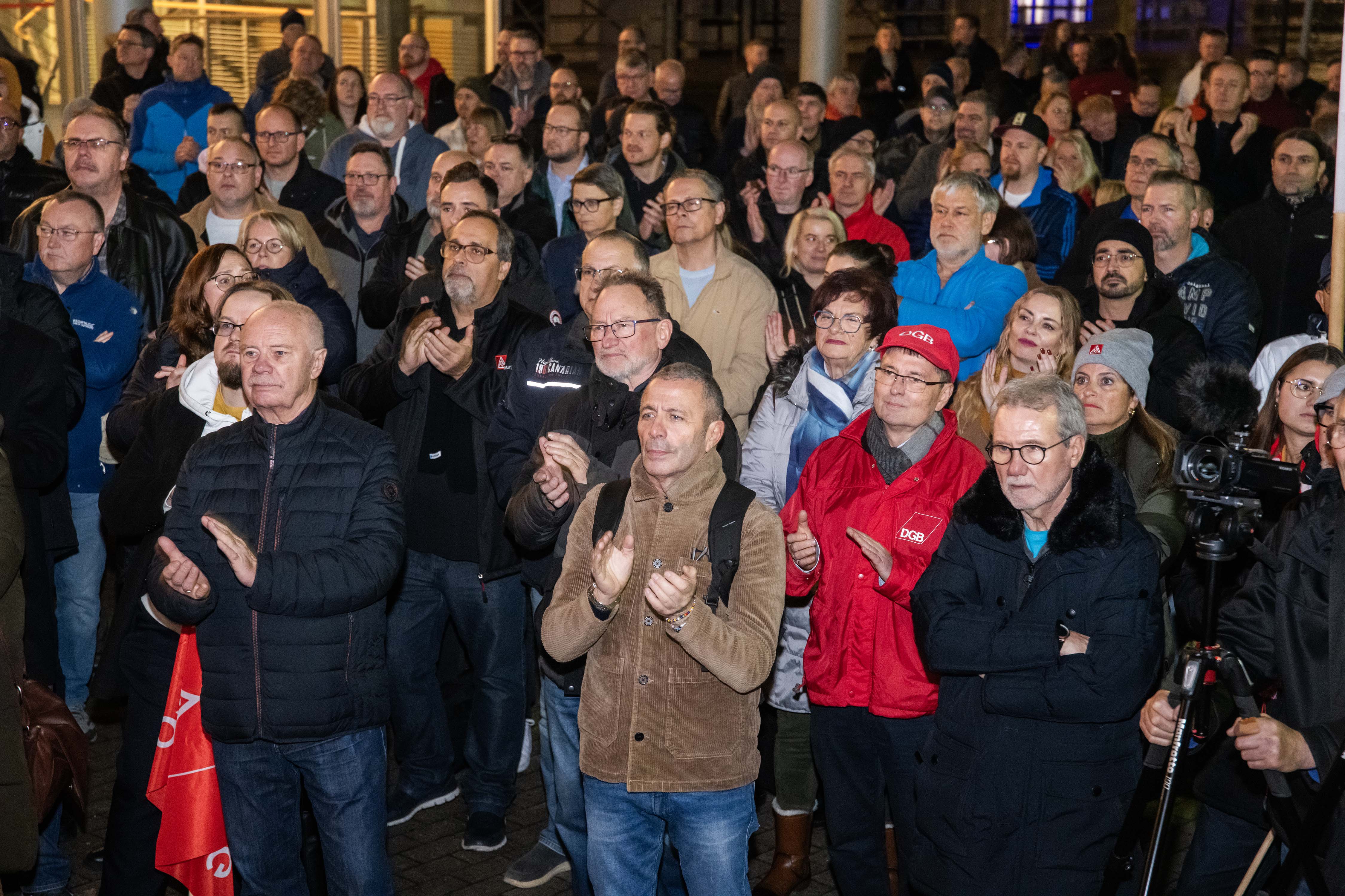 Jürgen Kerner, Zweiter Vorsitzender der IG Metall, übermittelte aus Frankfurt seine solidarischen Grüße an die Kundgebungsteilnehmer. Der Metaller unterstreicht: „Deutschland hat ein Problem in den Chefetagen. Zu vielen fehlt der Weitblick, das Händchen für zukunftsorientierte Unternehmensstrategie. Stattdessen alte Rezepte und Defensive: Abbau, Verlagerung, Schuld auf Politik schieben. Wir brauchen wieder Unternehmer, die wirklich etwas unternehmen, anstatt einfach wegzulaufen, wenn es hier schwierig wird. Neue Produkte, neue Geschäftsideen, neue Technologien – hier sind die Unternehmen gefordert. Natürlich muss die Politik einen verlässlichen Rahmen für unternehmerisches Handeln setzen, aber auch gezielt und steuernd eingreifen, um Arbeitsplätze zu sichern, heimische Wertschöpfung zu stärken und den Standort Zukunftsfest zu machen: mit dauerhaft wettbewerbsfähigen Energiepreisen, Investitionen in die Infrastruktur und mit gezielter Förderung für den klimagerechten Umbau der Betriebe. Dabei muss klar sein: Staatliche Unterstützung gibt es nur für Unternehmen, die Beschäftigung sichern, Standorte erhalten und vor Ort investieren.“