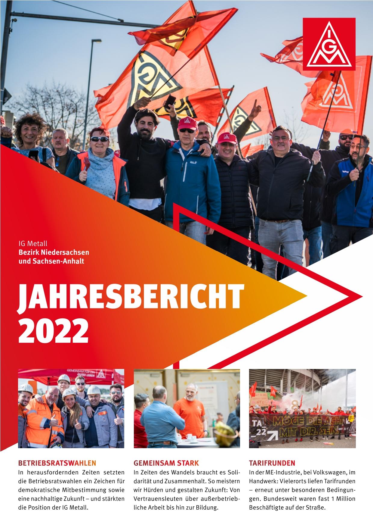 In diesem Bereich sind die letzten Geschäftsberichte der IG Metall Niedersachsen und Sachsen-Anhalt zu finden. Hier finden Sie detaillierte Informationen und Einblicke in unsere Arbeit. Als größte Einzelgewerkschaft in Niedersachsen und Sachsen-Anhalt vertreten wir die Interessen von mehr als 265.000 Mitgliedern aus verschiedenen Branchen und setzen uns aktiv für eine gerechte und sichere Arbeitswelt ein. Wir legen großen Wert auf Transparenz und legen daher unsere Geschäftsberichte regelmäßig offen. Wir sind stets bestrebt, die Arbeitsbedingungen unserer Mitglieder zu verbessern, faire Löhne und Arbeitszeiten auszuhandeln und für eine nachhaltige und sozial gerechte Industrie einzutreten. Wir laden herzlich ein, unsere Geschäftsberichte zu lesen und sich über unsere Arbeit zu informieren. Als IG Metall sind wir stolz auf das, was wir bisher erreicht haben, und werden weiterhin engagiert dafür arbeiten, die Interessen unserer Mitglieder zu vertreten und die Arbeitswelt zum Besseren zu verändern. Für Fragen oder weitere Informationen stehen wir gerne zur Verfügung.